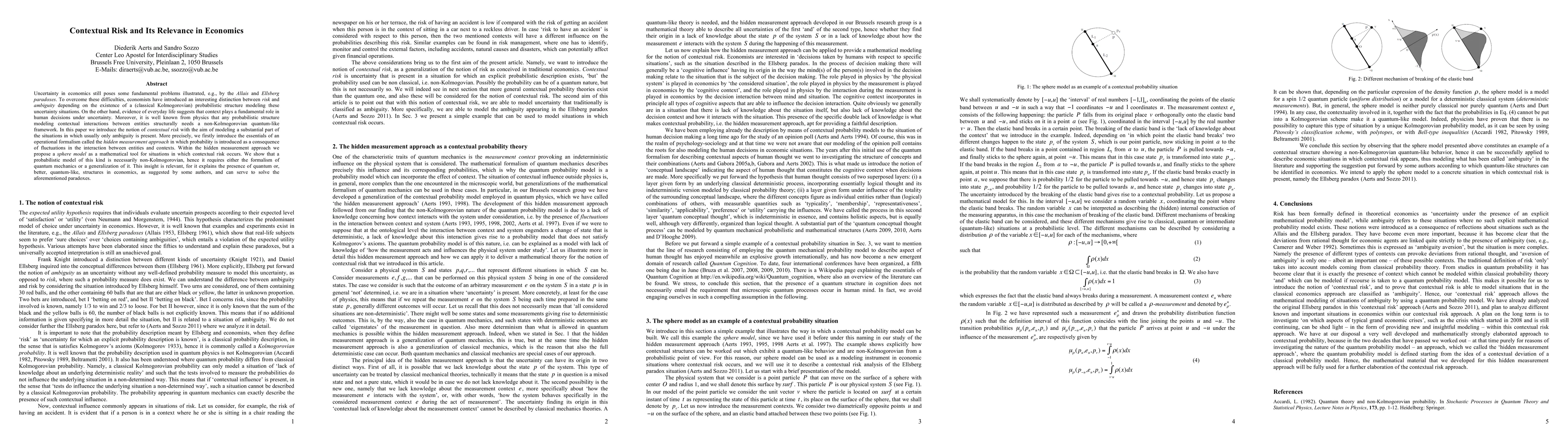 Uncertainty in economics still poses some fundamental problems illustrated, e.g., by the Allais and Ellsberg paradoxes. To overcome these difficulties, economists have introduced an interesting distinction between 'risk' and 'ambiguity' depending on the existence of a (classical Kolmogorovian) probabilistic structure modeling these uncertainty situations. On the other hand, evidence of everyday life suggests that 'context' plays a fundamental role in human decisions under uncertainty. Moreover, it is well known from physics that any probabilistic structure modeling contextual interactions between entities structurally needs a non-Kolmogorovian quantum-like framework. In this paper we introduce the notion of 'contextual risk' with the aim of modeling a substantial part of the situations in which usually only 'ambiguity' is present. More precisely, we firstly introduce the essentials of an operational formalism called 'the hidden measurement approach' in which probability is introduced as a consequence of fluctuations in the interaction between entities and contexts. Within the hidden measurement approach we propose a 'sphere model' as a mathematical tool for situations in which contextual risk occurs. We show that a probabilistic model of this kind is necessarily non-Kolmogorovian, hence it requires either the formalism of quantum mechanics or a generalization of it. This insight is relevant, for it explains the presence of quantum or, better, quantum-like, structures in economics, as suggested by some authors, and can serve to solve the aforementioned paradoxes.