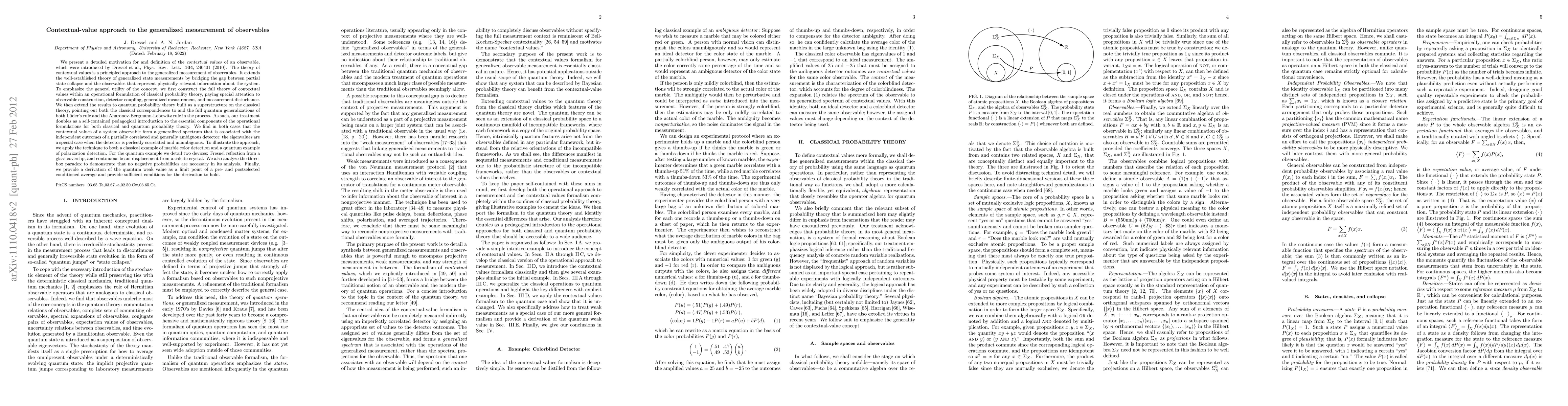 This paper develops the contextual-value approach to generalized measurement of observables, extending classical and quantum probability theories. It constructs a theory of contextual values, illustrating its application through classical and quantum examples, and shows that negative probabilities are not required in certain paradoxical scenarios.