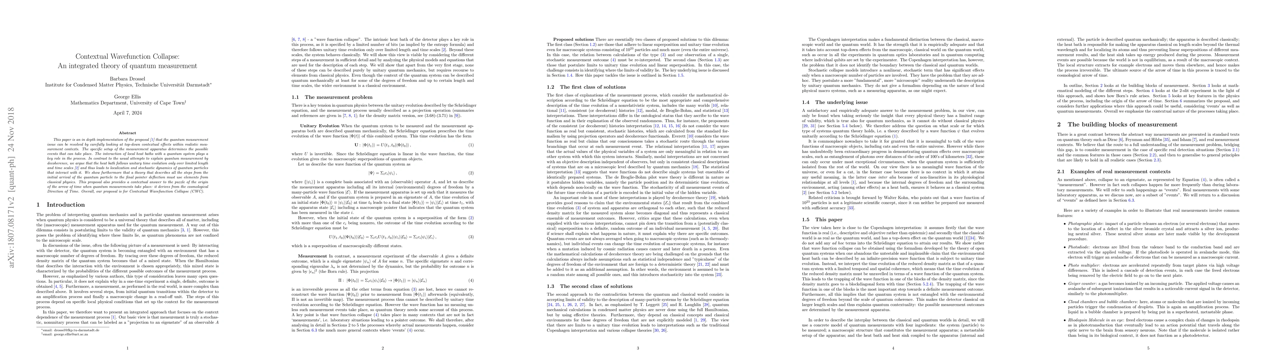 This paper is an in depth implementation of the proposal that the quantum measurement issue can be resolved by carefully looking at top-down contextual effects within realistic measurement contexts. The specific setup of the measurement apparatus determines the possible events that can take place. The interaction of local heat baths with a quantum system plays a key role in the process. In contrast to the usual attempts to explain quantum measurement by decoherence, we argue that the heat bath follows unitary time evolution only over limited length and time scales and thus leads to localization and stochastic dynamics of quantum particles that interact with it. We show furthermore that a theory that describes all the steps from the initial arrival of the quantum particle to the final pointer deflection must use elements from classical physics. This proposal also provides a contextual answer to the puzzle of the origin of the arrow of time when quantum measurements take place: it derives from the cosmological Direction of Time. Overall, our proposal is for Contextual Wavefunction Collapse (CWC).