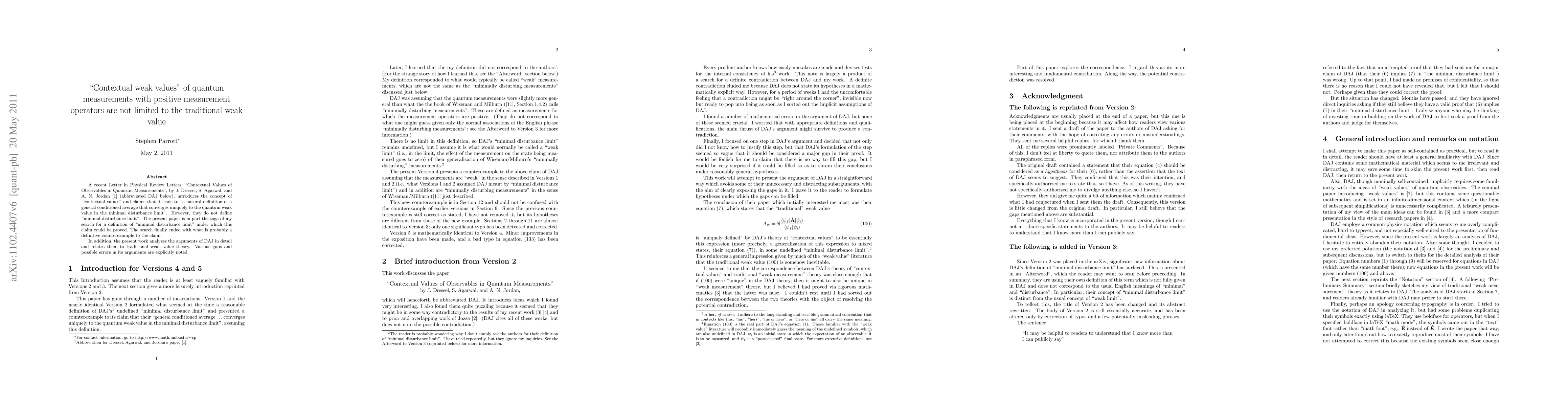 This paper critiques the concept of "contextual values" introduced by DAJ, arguing that their claim of a unique convergence to the quantum weak value in the "minimal disturbance limit" lacks a clear definition. The author presents a definitive counterexample, concluding that the traditional weak value is not universally applicable.