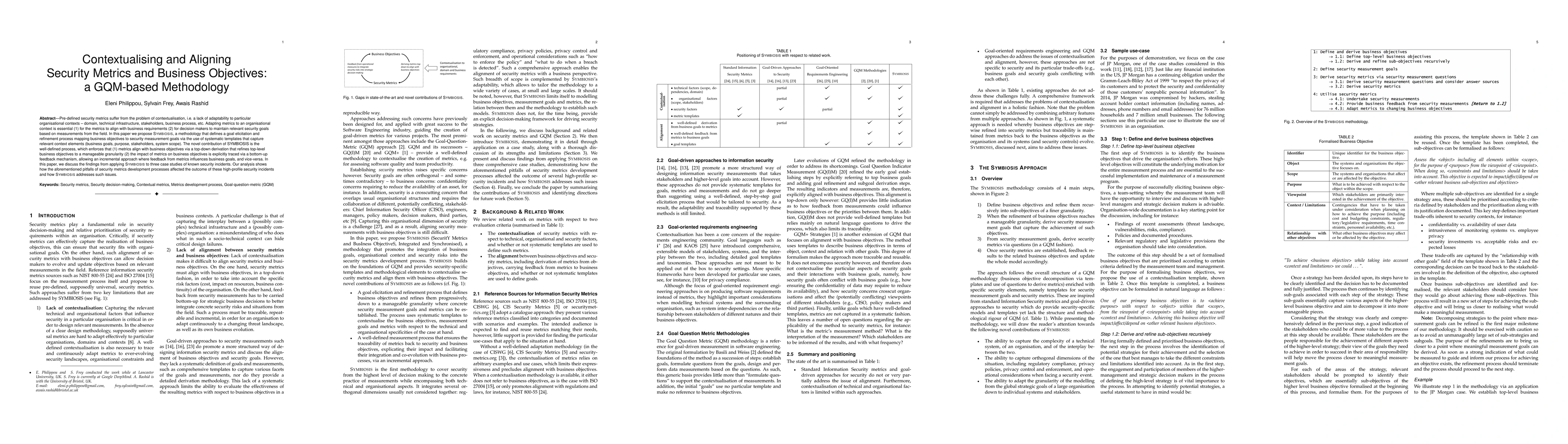 This paper proposes SYMBIOSIS, a GQM-based methodology for aligning security metrics with business objectives by contextualising them within an organisation's specific domain and infrastructure. The methodology ensures metrics are relevant and adaptable, addressing high-profile security incidents through case studies.