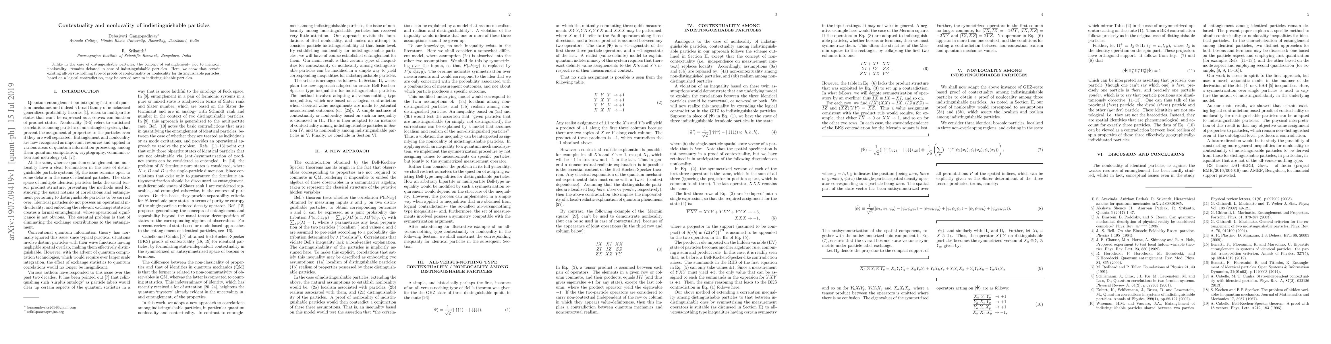 This paper demonstrates that certain proofs for contextuality and nonlocality, which apply to distinguishable particles, can also be extended to indistinguishable particles through logical contradictions, challenging the ongoing debate about entanglement and nonlocality in such cases.