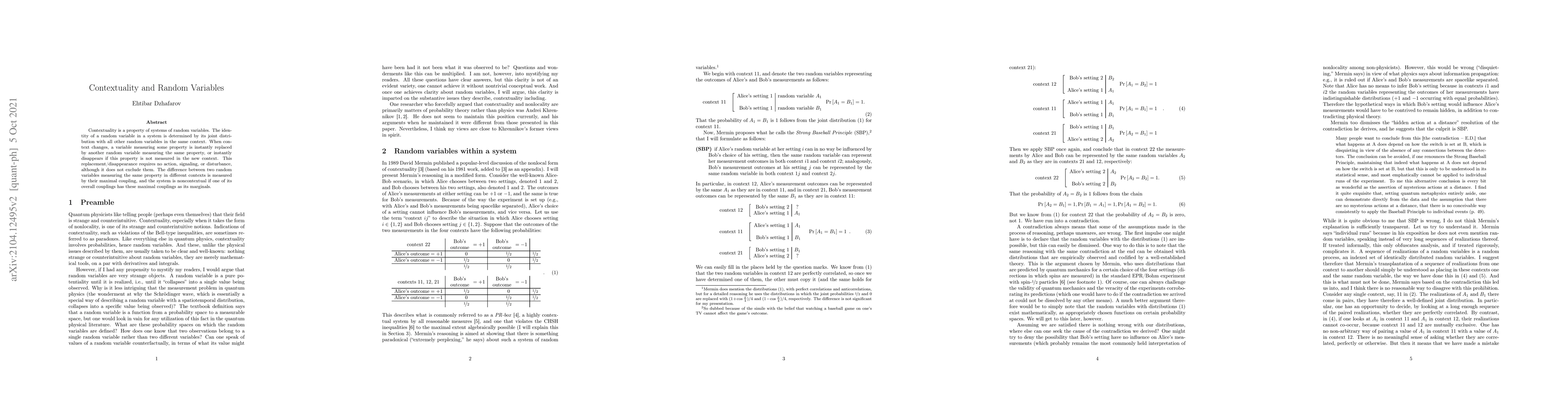 This paper explores contextuality in systems of random variables, where the identity of a variable depends on its joint distribution with others in the same context. Noncontextual systems exhibit maximal coupling between variables measuring the same property across contexts.
