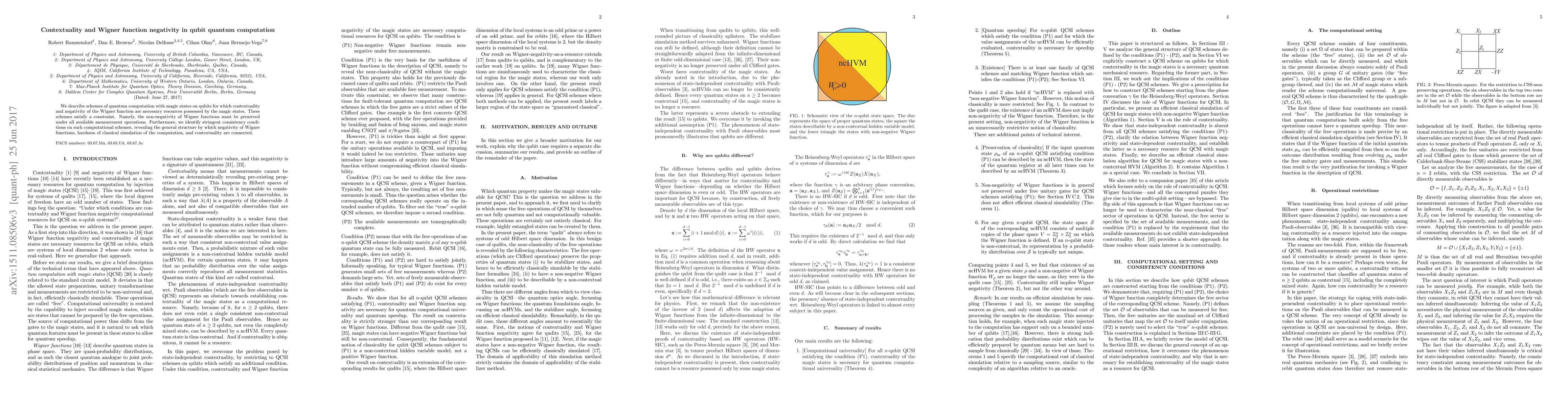 The paper establishes contextuality as a fundamental resource in quantum computation using magic states on qubits, connecting it with Wigner function negativity and the difficulty of classical simulation. It reveals a general structure linking these phenomena through stringent consistency conditions.