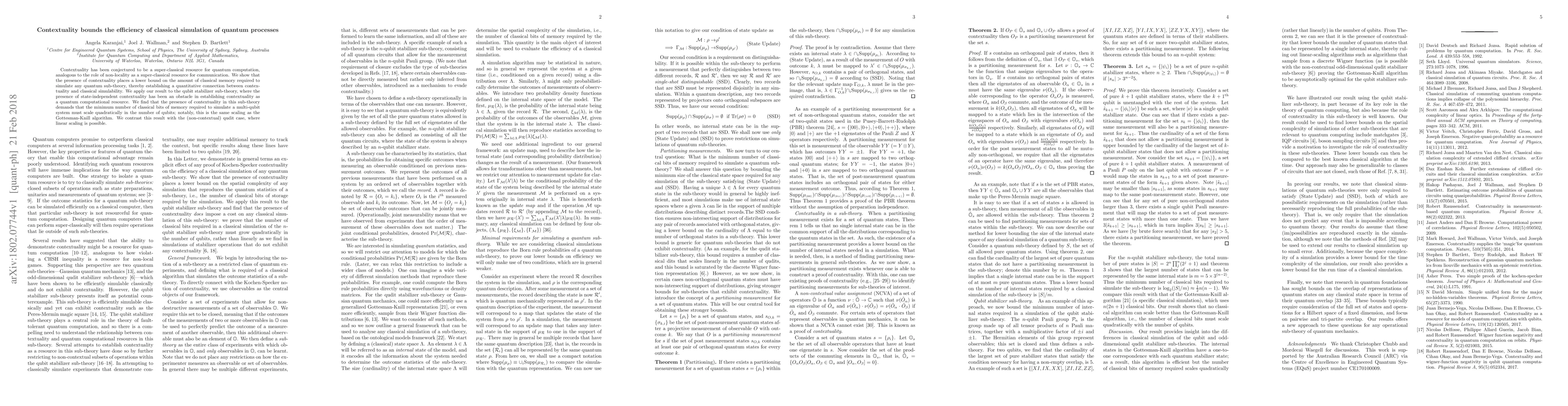 This paper establishes that contextuality imposes a lower bound on the classical memory needed to simulate quantum processes, demonstrating that contextuality limits the efficiency of classical simulation. Specifically, for the qubit stabilizer sub-theory, contextuality requires a quadratic scaling of classical bits with the number of qubits, contrasting with the linear scaling achievable in non-contextual cases.
