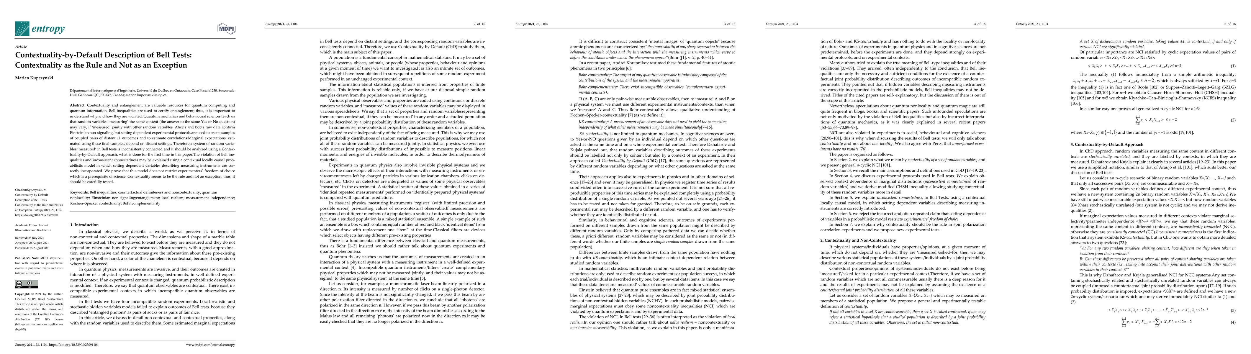 Contextuality and entanglement are valuable resources for quantum computing and quantum information. Bell inequalities are used to certify entanglement; thus, it is important to understand why and how they are violated. Quantum mechanics and behavioral sciences teach us that random variables measuring the same content (the answer to the same Yes or No question) may vary, if measured jointly with other random variables. Alice and Bob raw data confirm Einsteinian non-signaling, but setting dependent experimental protocols are used to create samples of coupled pairs of distant outcomes and to estimate correlations. Marginal expectations, estimated using these final samples, depend on distant settings. Therefore, a system of random variables measured in Bell tests is inconsistently connected and it should be analyzed using a Contextuality-by-Default approach, what is done for the first time in this paper. The violation of Bell inequalities and inconsistent connectedness may be explained using a contextual locally causal probabilistic model in which setting dependent variables describing measuring instruments are correctly incorporated. We prove that this model does not restrict experimenters freedom of choice which is a prerequisite of science. Contextuality seems to be the rule and not an exception; thus, it should be carefully tested.