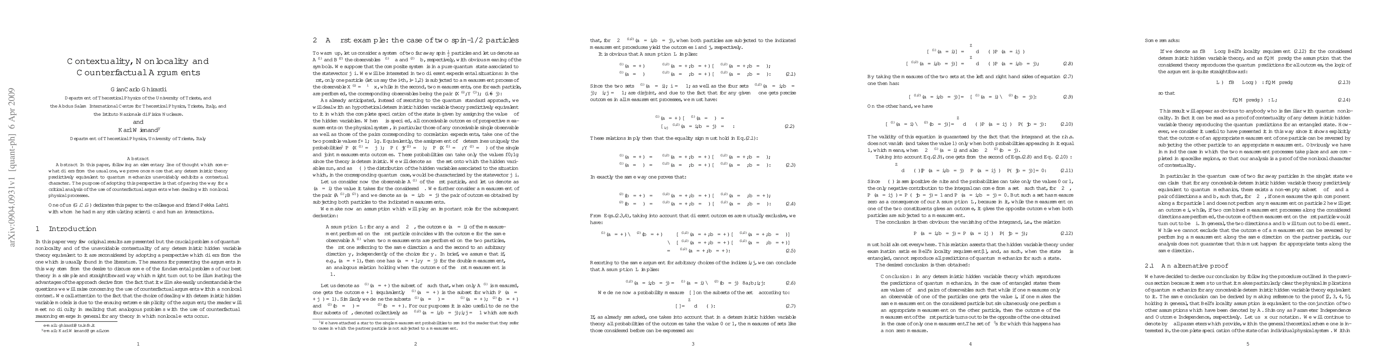 In this paper, following an elementary line of thought which somewhat differs from the usual one, we prove once more that any deterministic theory predictively equivalent to quantum mechanics unavoidably exhibits a contextual character. The purpose of adopting this perspective is that of paving the way for a critical analysis of the use of counterfactual arguments when dealing with nonlocal physical processes.