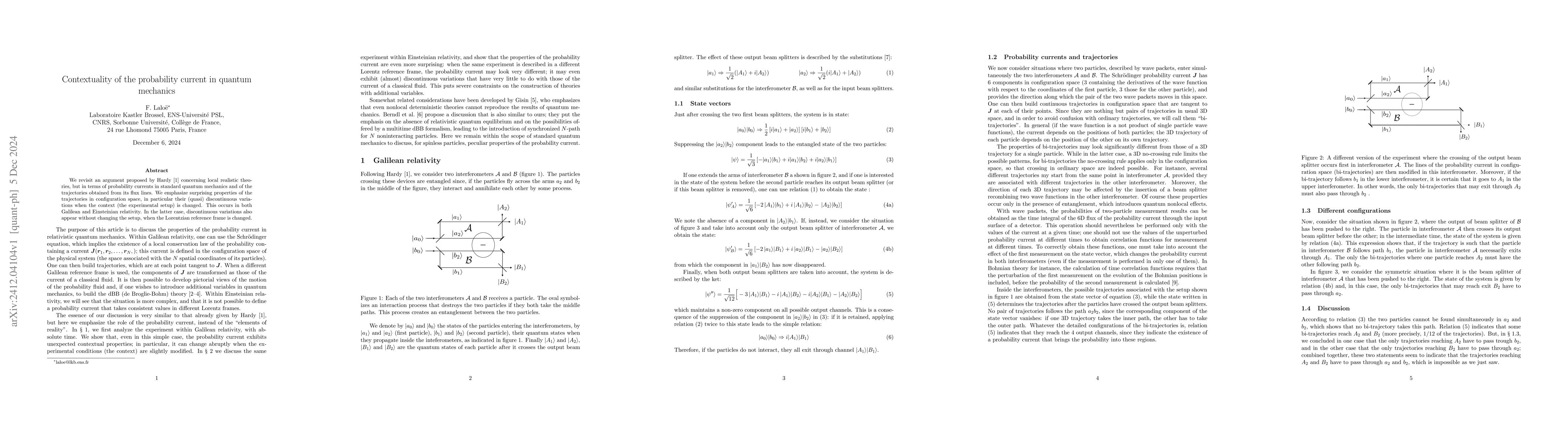 We revisit an argument proposed by Hardy concerning local realistic theories, but in terms of probability currents in standard quantum mechanics and of the trajectories obtained from its flux lines. We emphasize surprising properties of the trajectories in configuration space, in particular their (quasi) discontinuous variations when the context (the experimental setup) is changed. This occurs in both Galilean and Einsteinian relativity. In the latter case, discontinuous variations also appear without changing the setup, when the Lorentzian reference frame is changed.