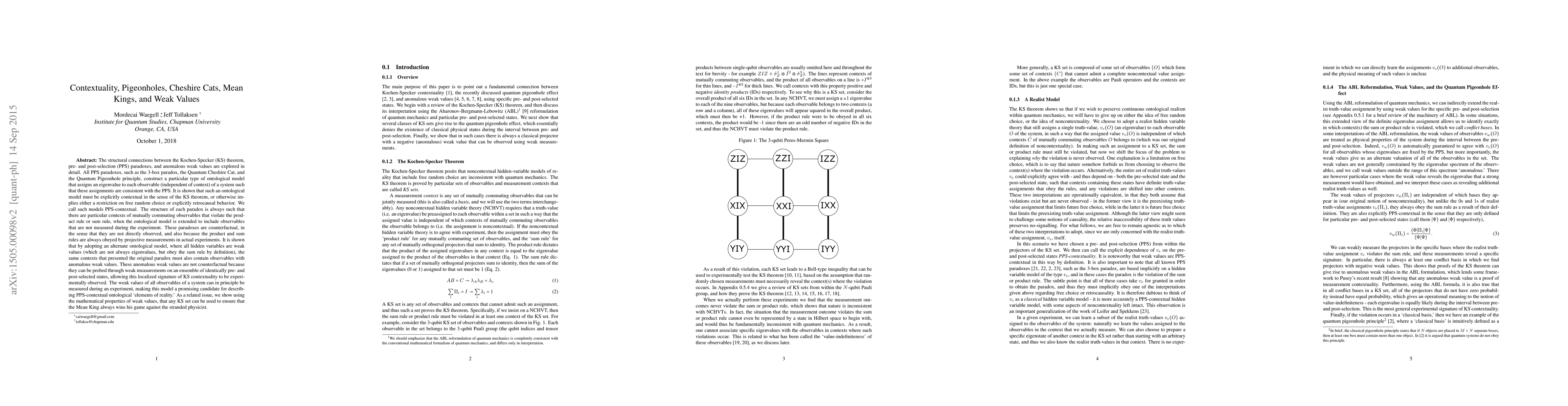 This paper explores the connections between the Kochen-Specker theorem and various paradoxes in quantum mechanics, showing that ontological models consistent with pre- and post-selection paradoxes necessitate contextuality. It proposes an alternative model using weak values, which can be experimentally probed and offers a new perspective on contextuality.