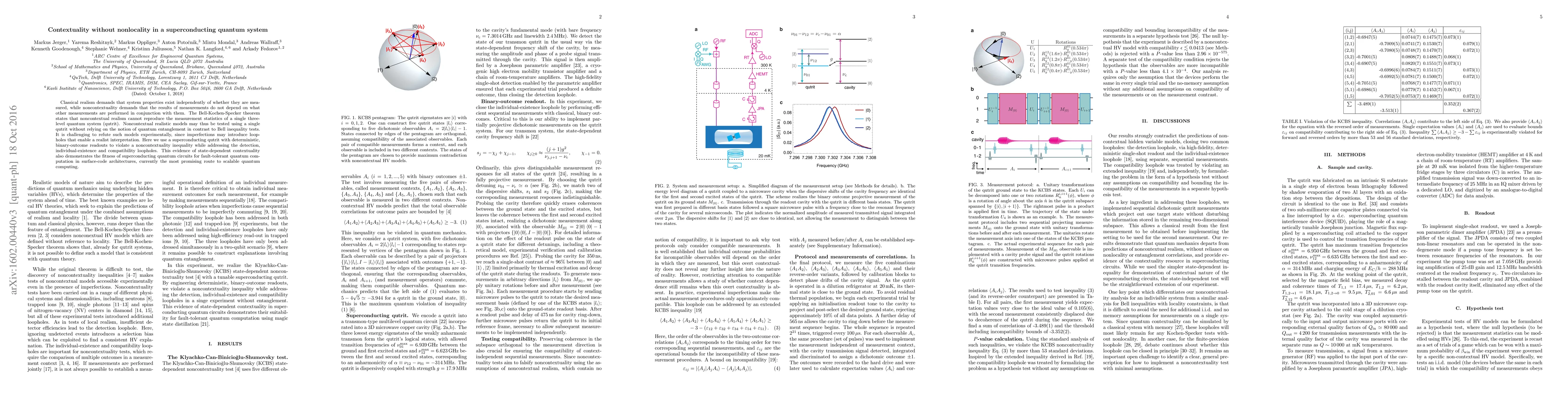 This paper demonstrates contextuality in a superconducting quantum system without relying on nonlocality, using a qutrit to violate a noncontextuality inequality while closing detection, individual-existence, and compatibility loopholes. This finding supports the potential of superconducting quantum circuits for scalable quantum computing.