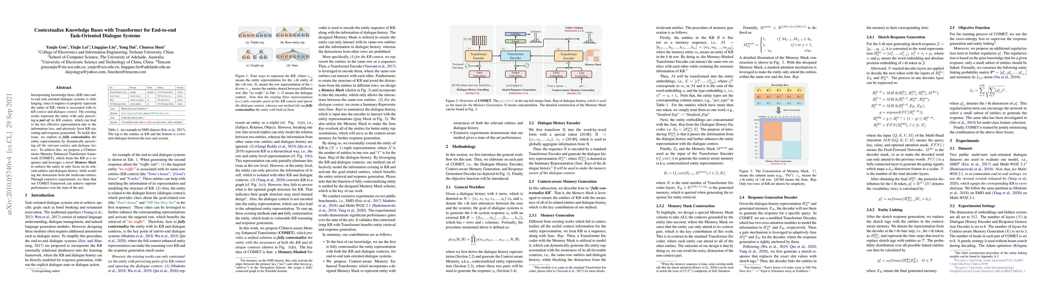 The paper proposes a COMET framework that leverages a Memory Mask within a Transformer model to fully contextualize knowledge base entities by dynamically focusing on relevant entities and dialogue history, improving task-oriented dialogue systems' performance. The COMET framework outperforms existing methods by reducing information loss and enhancing KB reasoning and response generation.