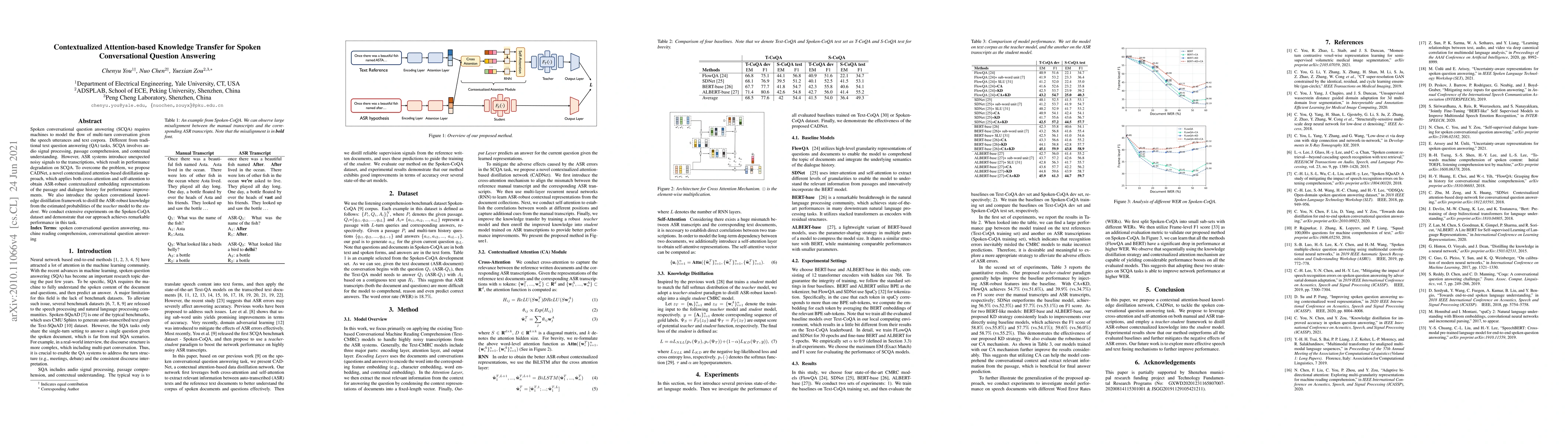 CADNet introduces a novel contextualized attention-based knowledge distillation network that effectively transfers ASR-robust knowledge from a teacher model to a student model, improving performance in SCQA tasks.