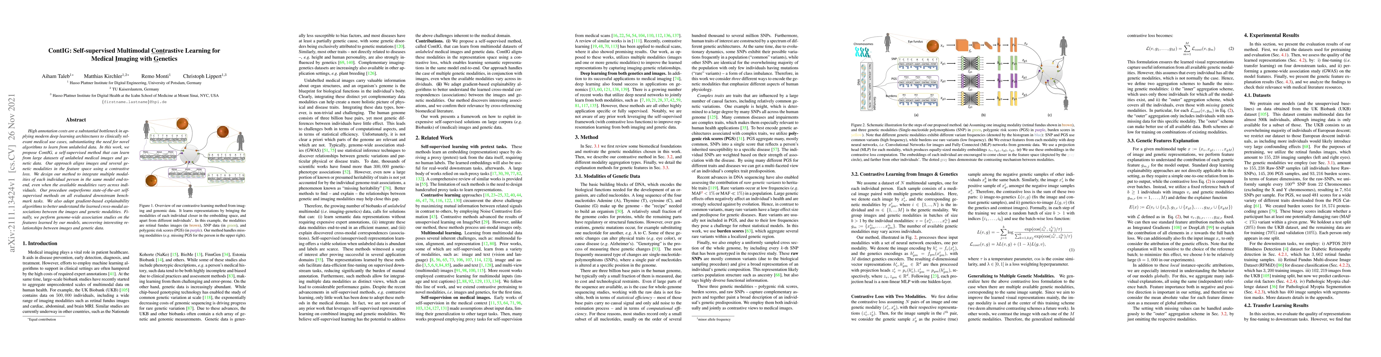 This paper introduces ContIG, a self-supervised method that learns from unlabeled medical images and genetic data, outperforming state-of-the-art methods on downstream tasks and uncovering interesting relationships between images and genetic data through genome-wide association studies.