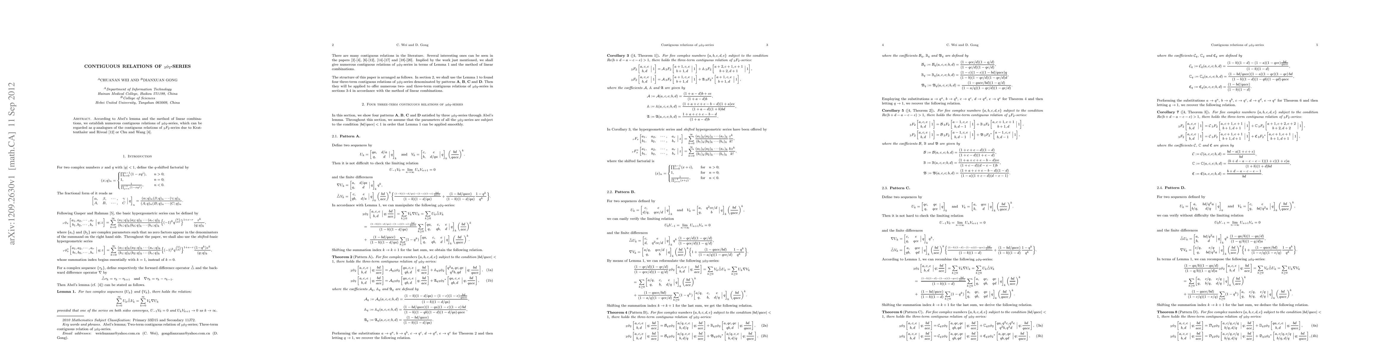 The paper establishes numerous contiguous relations for $_3\phi_2$-series using Abel's lemma and linear combinations, positioning them as q-analogues of contiguous relations previously found for $_3F_2$-series by Krattenthaler, Rivoal, and Chu and Wang. These relations extend classical series connections into the q-series domain.