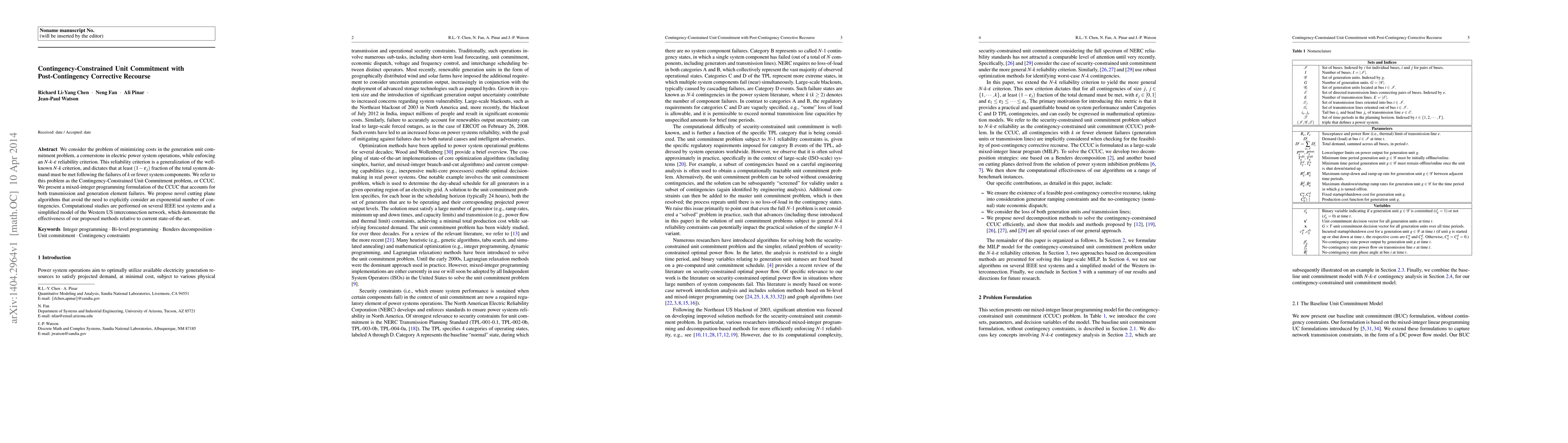 This paper presents a mixed-integer programming formulation for the Contingency-Constrained Unit Commitment problem, aiming to minimize generation costs while ensuring reliability under component failures. It introduces cutting plane algorithms to efficiently solve the problem without explicitly considering all possible contingencies.