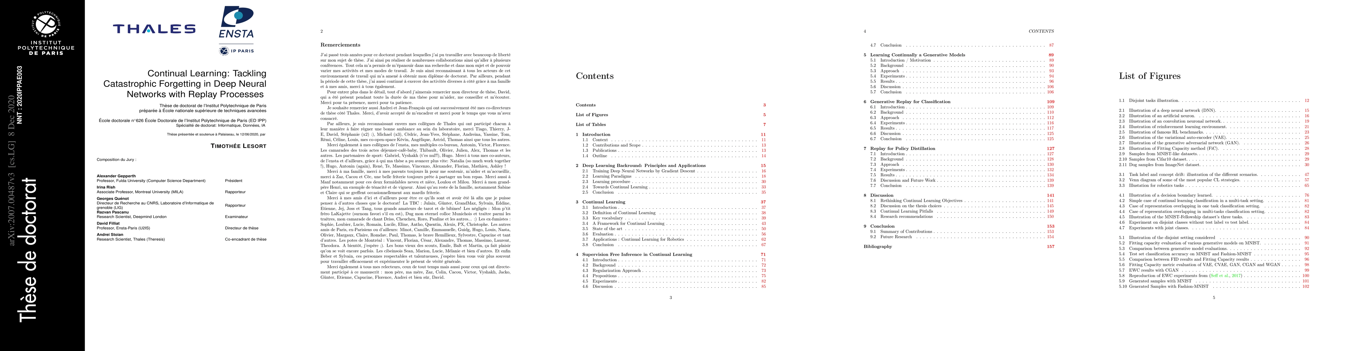 This paper explores continual learning methods to address the issue of catastrophic forgetting in deep neural networks. It proposes replay processes, including generative and rehearsal methods, to enable neural networks to learn new experiences without forgetting previous knowledge, demonstrating their effectiveness across various learning paradigms.