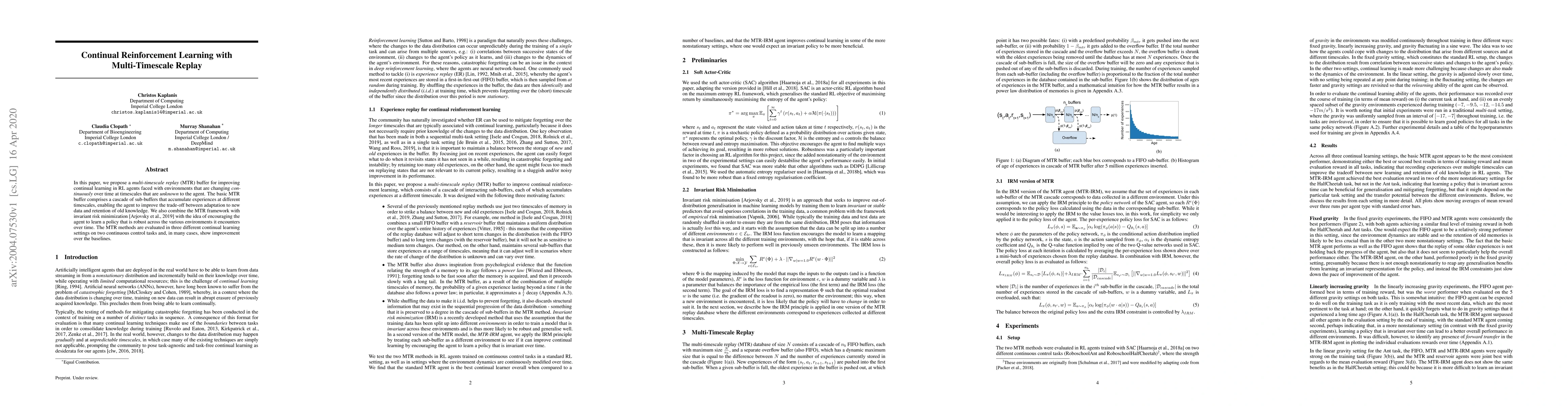 Researchers developed a new method for RL agents to learn from changing environments with unknown timescales, improving their ability to adapt and retain old knowledge. The multi-timescale replay buffer shows improvement over baselines in various continual learning settings.