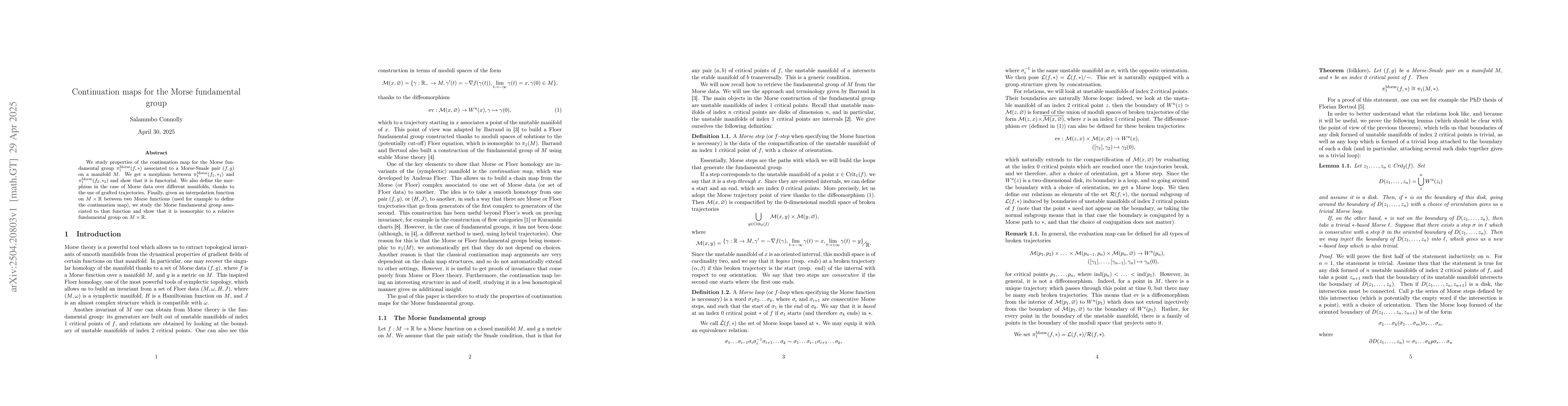 The paper studies properties of the continuation map for the Morse fundamental group, demonstrating its functoriality and defining the morphism for Morse data over different manifolds using grafted trajectories.