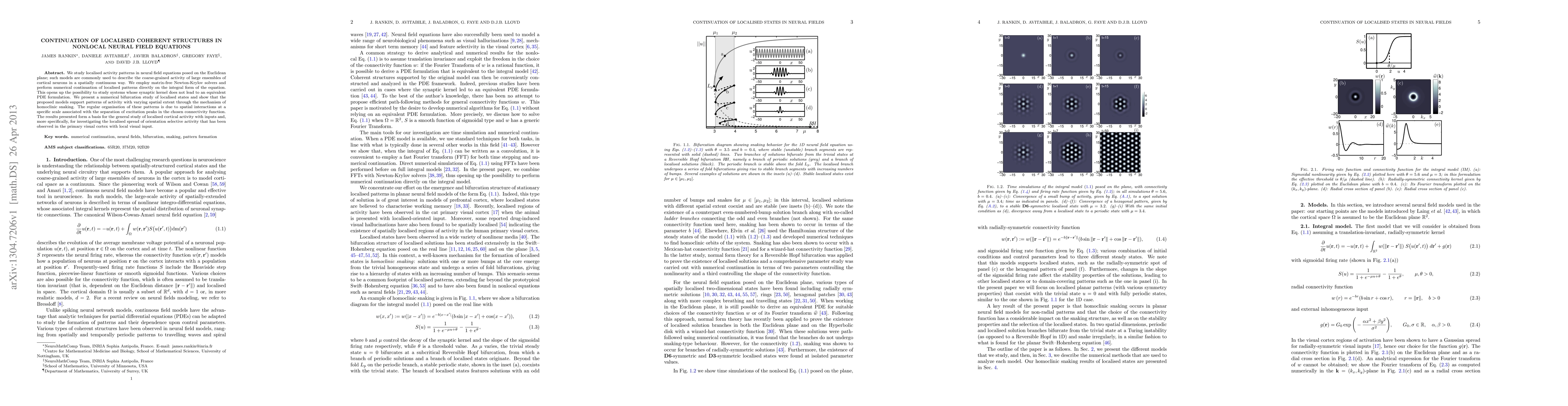 Researchers study localized activity patterns in neural field equations to understand how neurons interact with each other. They find that these interactions can create complex patterns of activity with varying spatial extent.