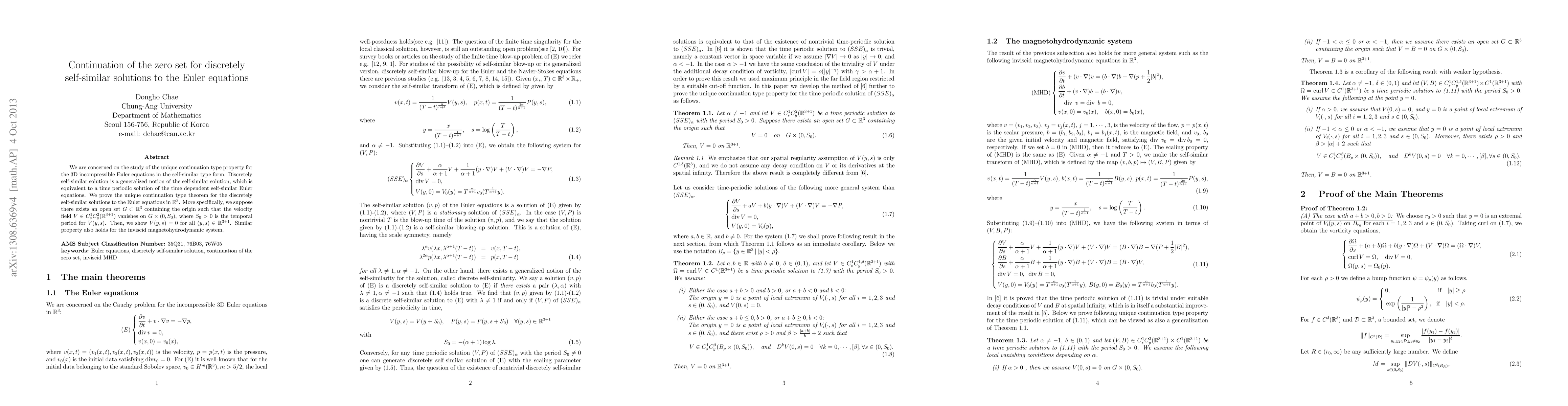 This paper proves a unique continuation theorem for discretely self-similar solutions to the 3D incompressible Euler equations, showing that if a velocity field vanishes in an open set containing the origin, it must vanish everywhere in $\Bbb R^3$. The result also extends to inviscid magnetohydrodynamic systems.