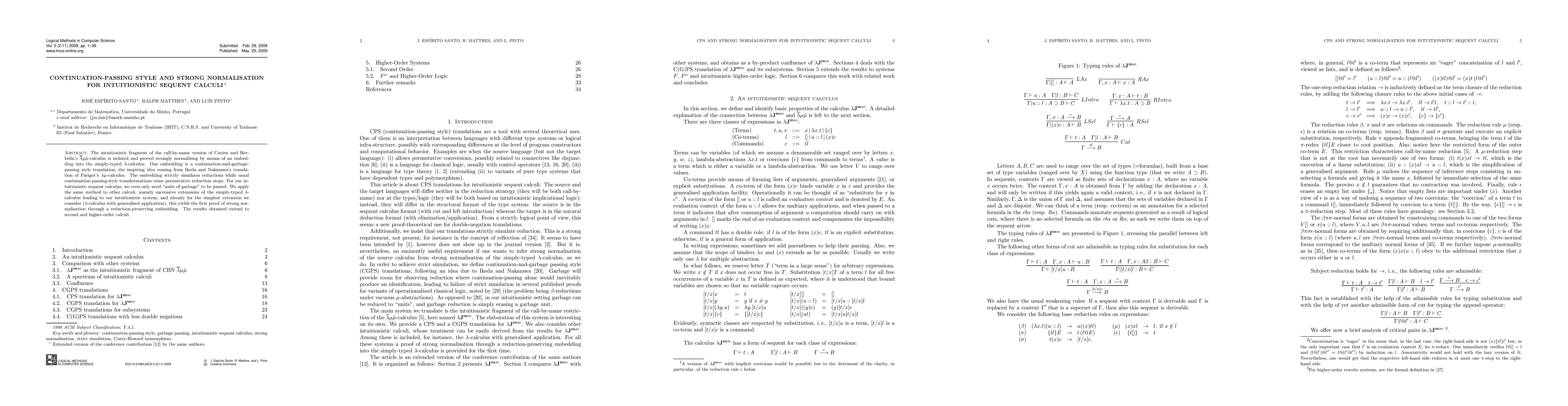 The intuitionistic fragment of the call-by-name version of Curien and Herbelin's \lambda\_mu\_{\~mu}-calculus is isolated and proved strongly normalising by means of an embedding into the simply-typed lambda-calculus. Our embedding is a continuation-and-garbage-passing style translation, the inspiring idea coming from Ikeda and Nakazawa's translation of Parigot's \lambda\_mu-calculus. The embedding strictly simulates reductions while usual continuation-passing-style transformations erase permutative reduction steps. For our intuitionistic sequent calculus, we even only need "units of garbage" to be passed. We apply the same method to other calculi, namely successive extensions of the simply-typed λ-calculus leading to our intuitionistic system, and already for the simplest extension we consider (λ-calculus with generalised application), this yields the first proof of strong normalisation through a reduction-preserving embedding. The results obtained extend to second and higher-order calculi.