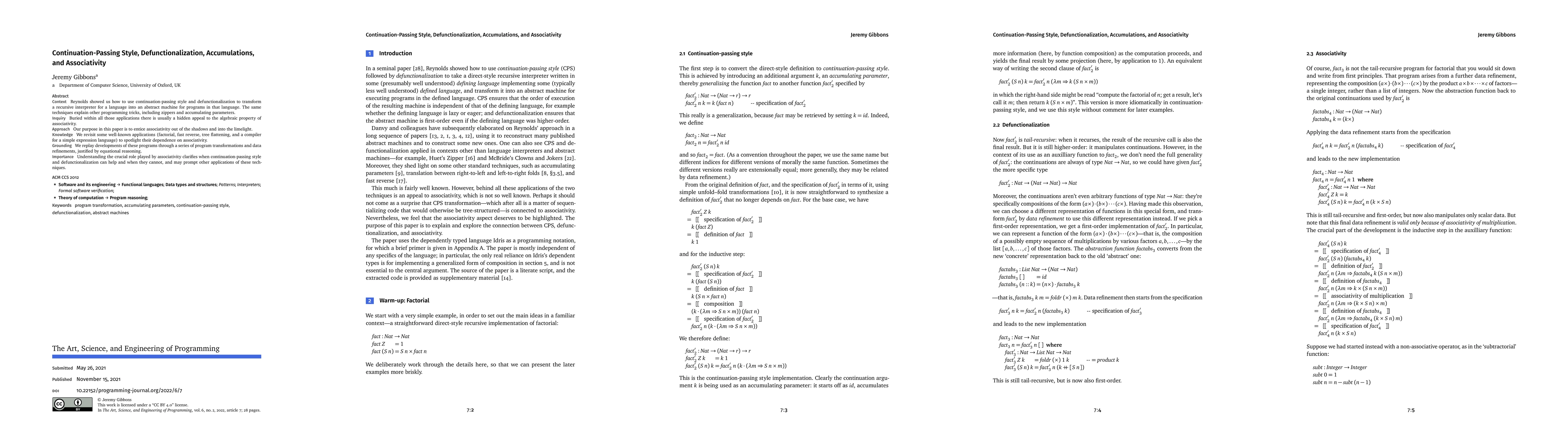 This paper explores how associativity is a crucial property underlying various programming techniques, such as continuation-passing style and defunctionalization, and demonstrates its role in simplifying complex programs through equational reasoning.