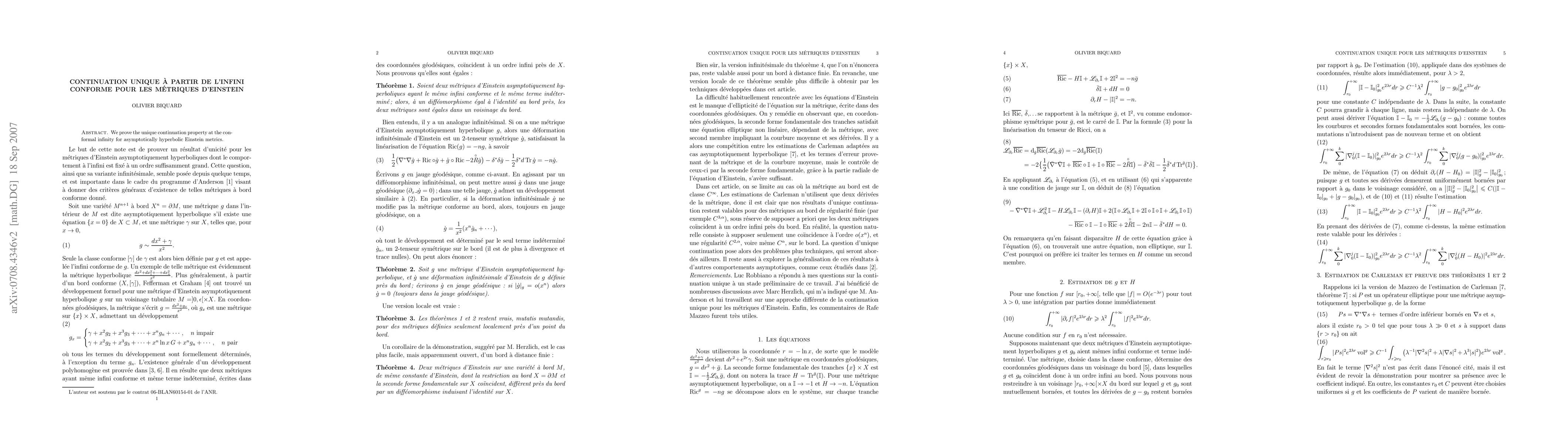 We prove the unique continuation property at the conformal infinity for asymptotically hyperbolic Einstein metrics.
