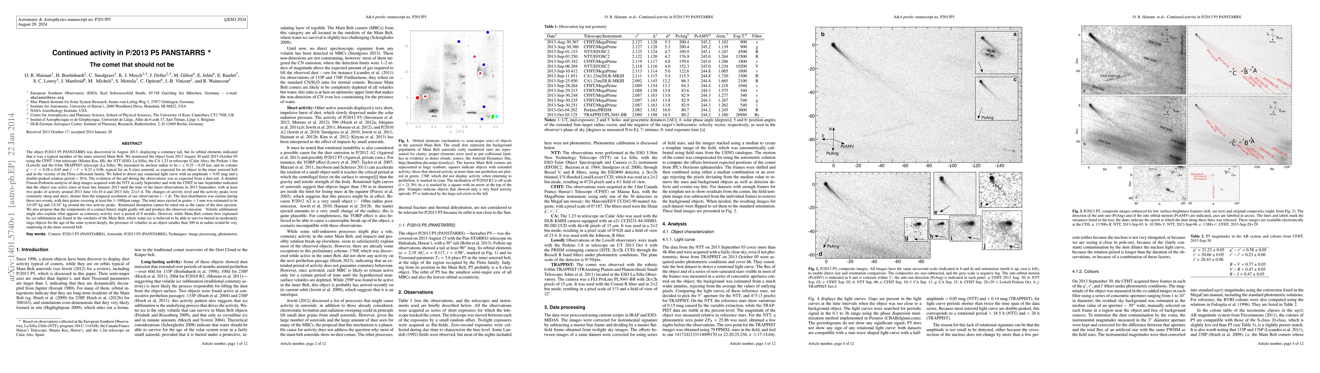 P/2013 P5 PANSTARRS, an object with asteroid-like orbital characteristics, exhibited cometary activity from late January to September 2013, with sharp, short bursts of dust ejection. The presence of volatiles in such a small object in the inner asteroid belt remains highly unusual.