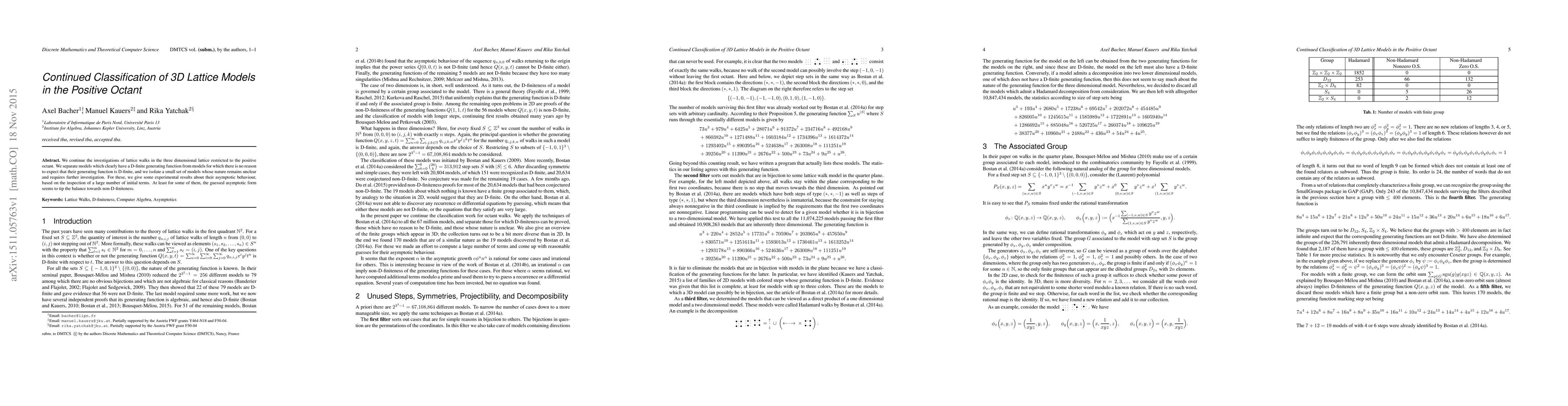 We continue the investigations of lattice walks in the three dimensional lattice restricted to the positive octant. We separate models which clearly have a D-finite generating function from models for which there is no reason to expect that their generating function is D-finite, and we isolate a small set of models whose nature remains unclear and requires further investigation. For these, we give some experimental results about their asymptotic behaviour, based on the inspection of a large number of initial terms. At least for some of them, the guessed asymptotic form seems to tip the balance towards non-D-finiteness.