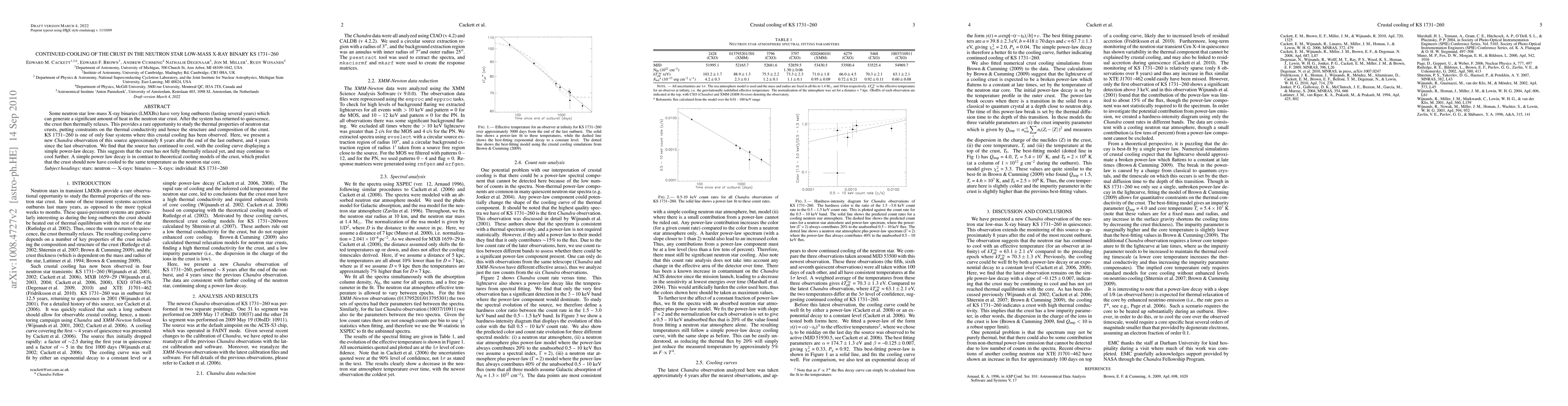 This paper reports continued cooling of the neutron star crust in KS 1731-260, a low-mass X-ray binary, observed 8 years post-outburst. The cooling follows a simple power-law decay, contradicting theoretical models predicting crust-core thermal equilibrium.