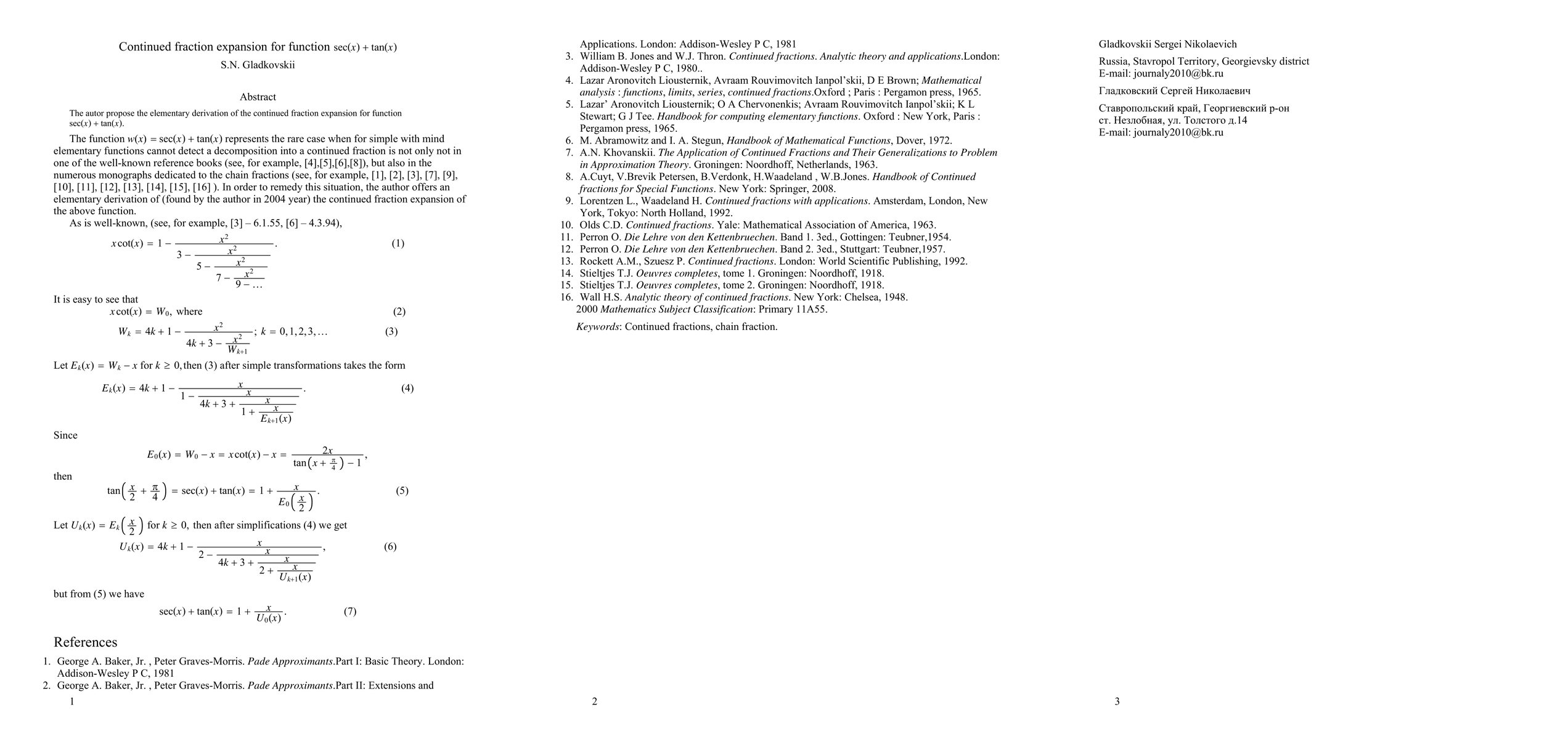 Summary: The paper presents an elementary derivation for the continued fraction expansion of the function sec(x) + tan(x), offering a new perspective on its mathematical representation. This work contributes to the understanding of trigonometric functions through continued fractions.
