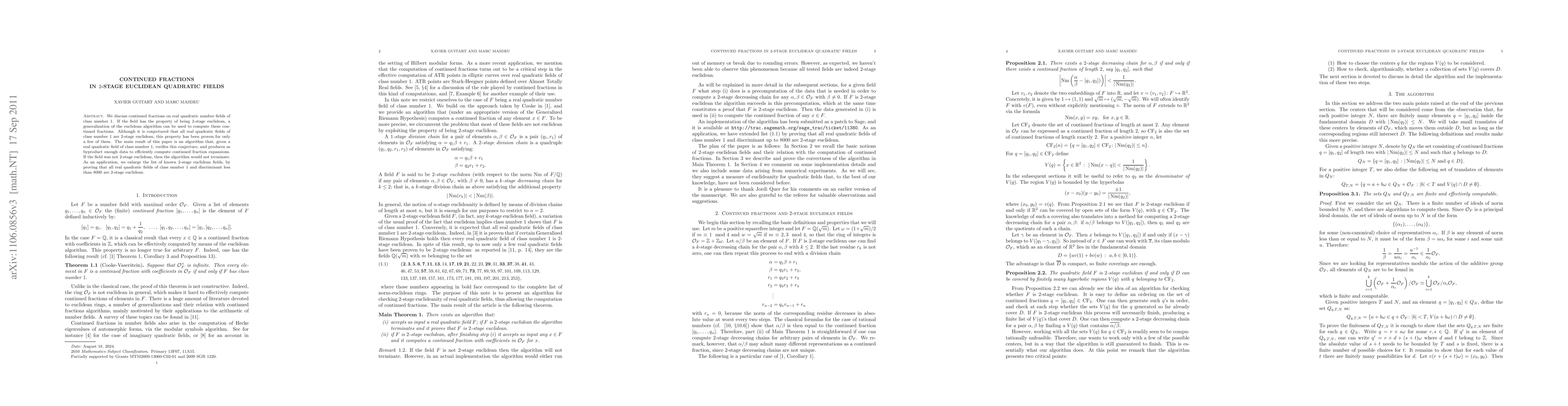 This paper presents an algorithm to verify the conjecture that all real quadratic fields of class number 1 are 2-stage euclidean, and computes continued fractions in such fields. It also proves that all real quadratic fields with class number 1 and discriminant below 8000 are 2-stage euclidean.