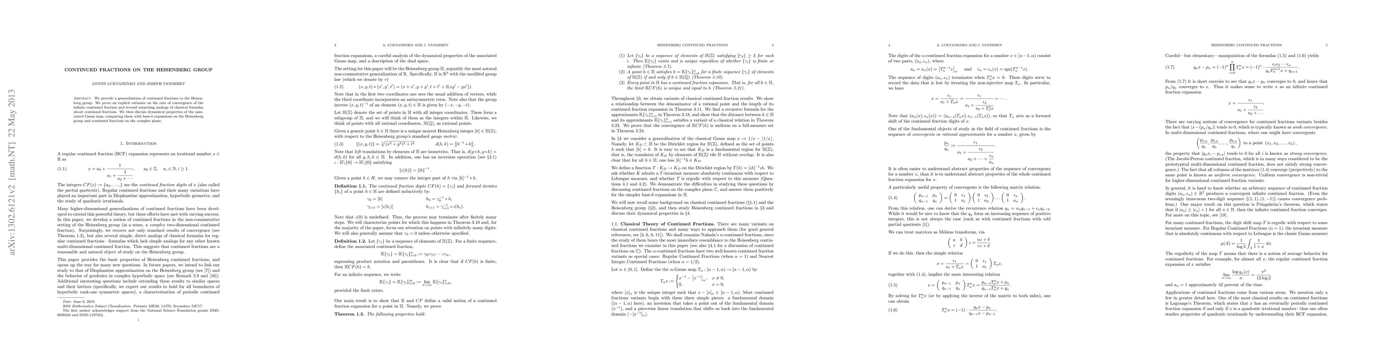 The research generalizes continued fractions to the Heisenberg group, providing explicit convergence rate estimates and surprising analogs to classical continued fraction formulas. It also explores dynamical properties of the associated Gauss map, comparing them with base-$b$ expansions on the Heisenberg group and continued fractions on the complex plane.