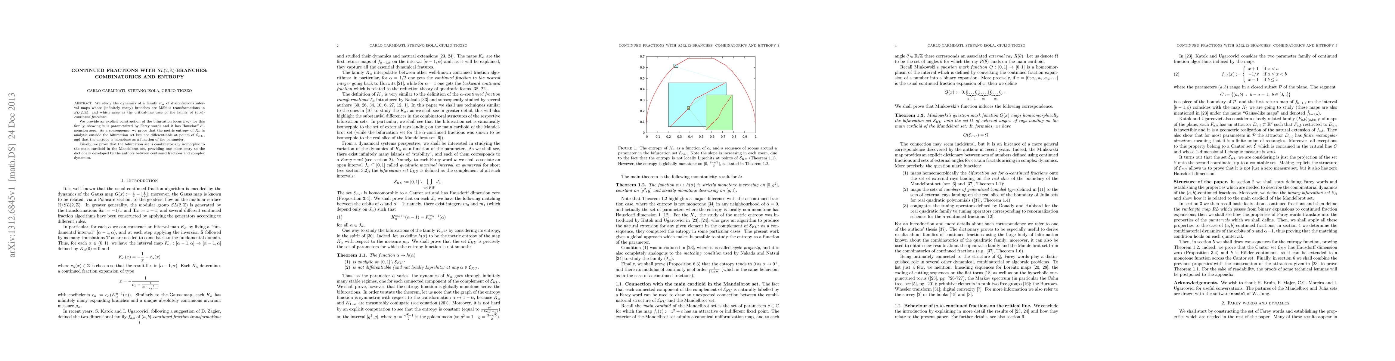 This paper explores the dynamics of a family of discontinuous interval maps related to (a, b)-continued fractions, showing their branches are Möbius transformations in SL(2, Z). It constructs the bifurcation locus E_KU, proving it has Hausdorff dimension zero and is parametrized by Farey words, and demonstrates the metric entropy's analyticity and non-differentiability at bifurcation points.