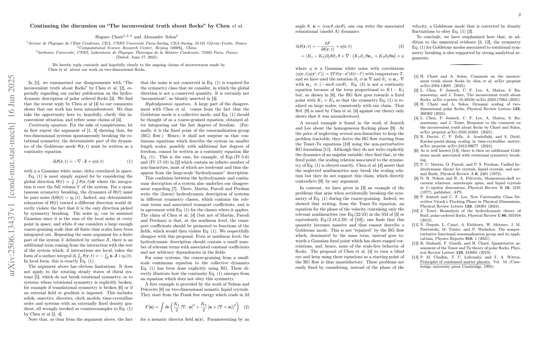 We hereby reply concisely and hopefully clearly to the ongoing claims of incorrectness made by Chen et al. about our work on two-dimensional flocks.