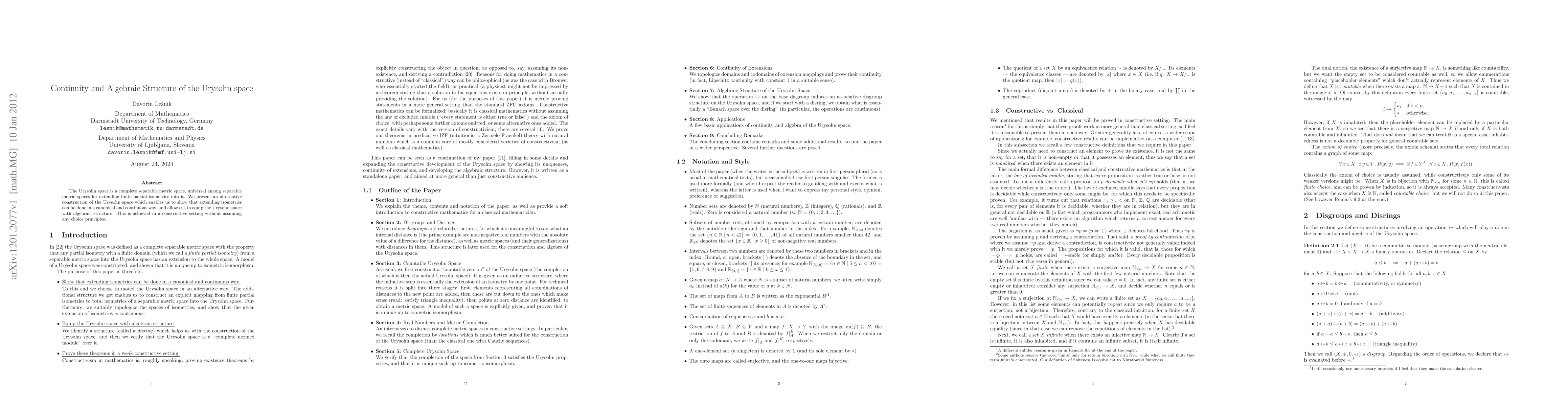 This paper constructs an alternative Urysohn space that facilitates the continuous and canonical extension of isometries and introduces algebraic structure, all without relying on choice principles. The new construction maintains the space's universality for extending finite partial isometries.