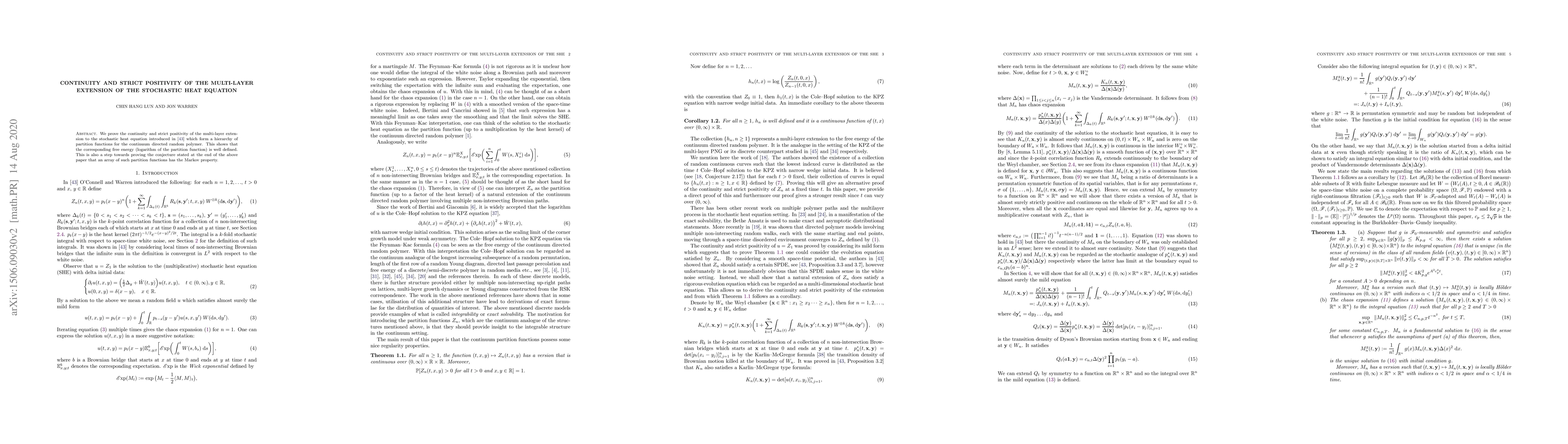 This paper proves the continuity and strict positivity of the multi-layer extension of the stochastic heat equation, establishing the well-definedness of the corresponding free energy. This advancement also supports the conjecture regarding the Markov property of an array of these partition functions.