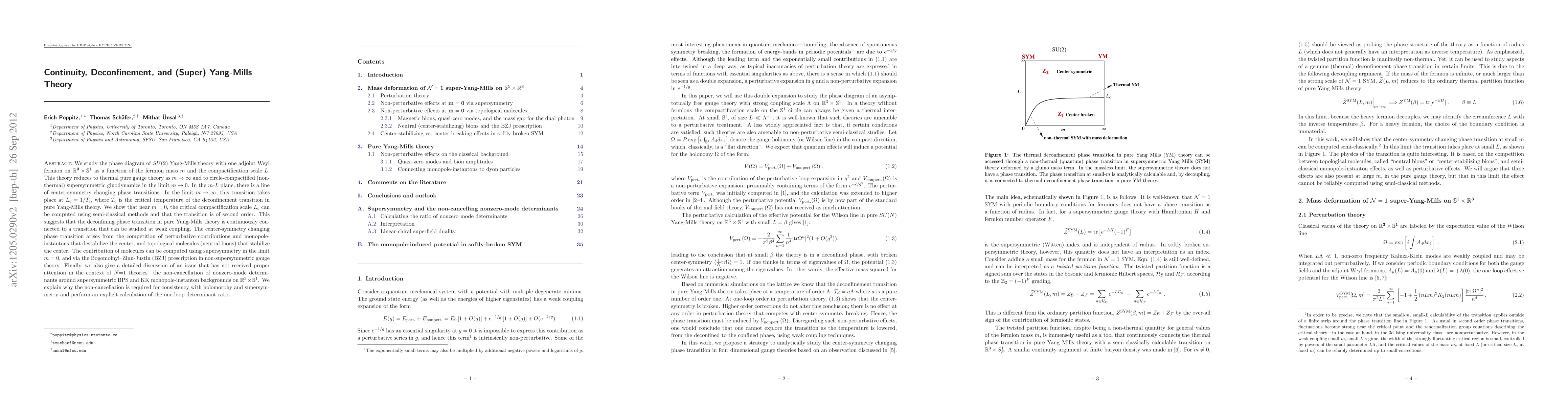 This research examines the phase diagram of SU(2) Yang-Mills theory with an adjoint Weyl fermion, identifying a line of center symmetry changing phase transitions. It reveals a continuous connection between deconfinement in pure Yang-Mills theory and weak coupling, highlighting the role of topological molecules and the importance of non-cancellation of determinants in supersymmetric contexts.