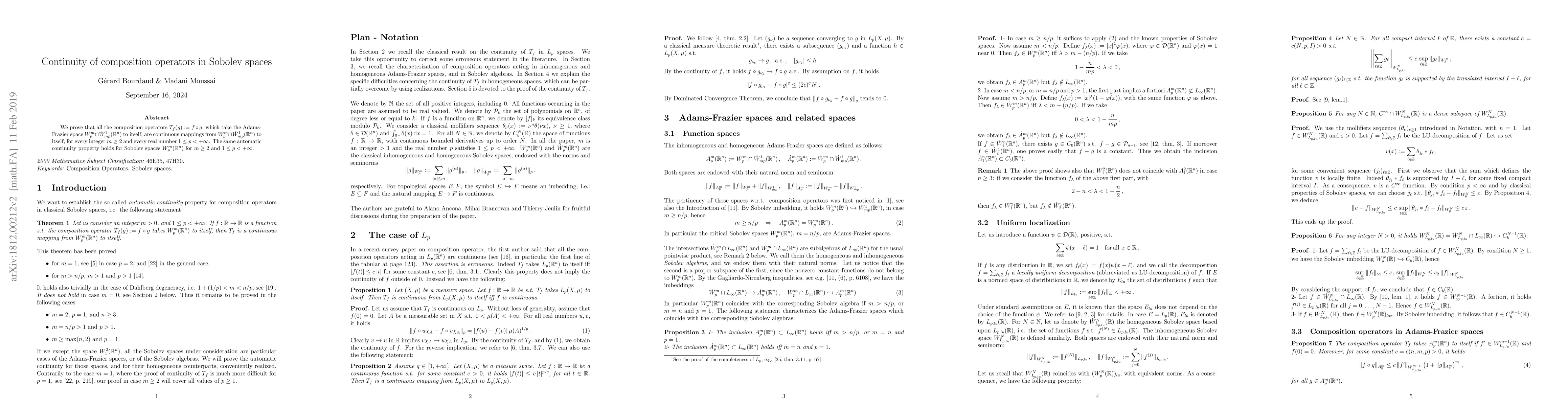 We prove that all the composition operators $T_f(g):= f\circ g$, which take the Adams-Frazier space $W^{m}_{p}\cap \dot{W}^{1}_{mp}(\mathbb{R}^n)$ to itself, are continuous mappings from $W^{m}_{p}\cap \dot{W}^{1}_{mp}(\mathbb{R}^n)$ to itself, for every integer $m\geq 2$ and every real number $1\leq p<+\infty$. The same automatic continuity property holds for Sobolev spaces $W^m_p(\mathbb{R}^n)$ for $m\geq 2$ and $1\leq p<+\infty$.