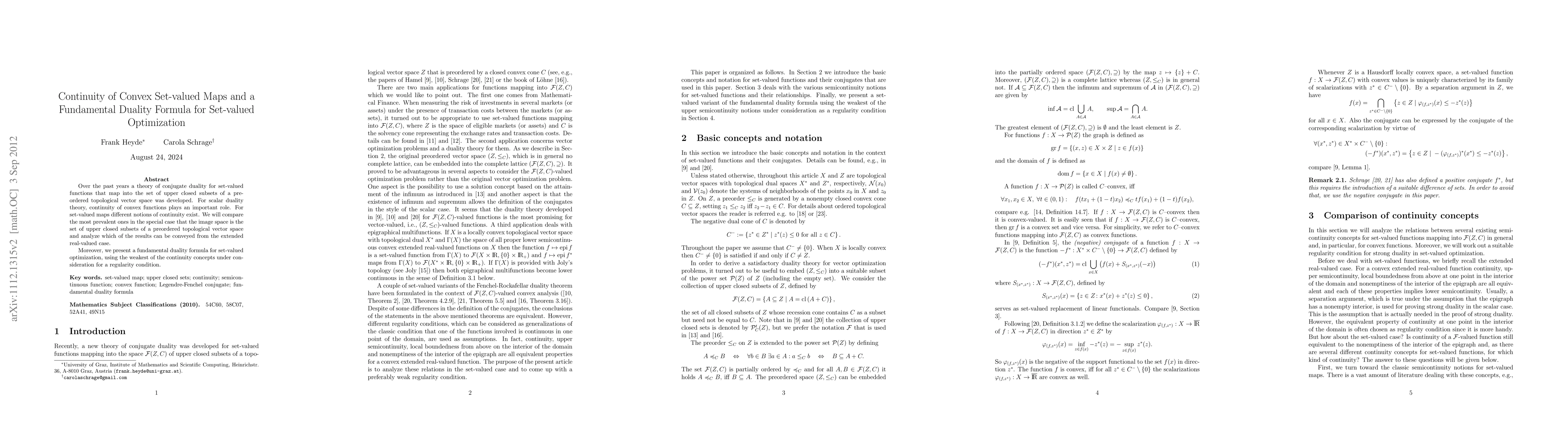 This paper explores various continuity notions for convex set-valued maps in preordered topological vector spaces and compares their implications. It also introduces a fundamental duality formula for set-valued optimization, leveraging the least restrictive continuity concept for a regularity condition.