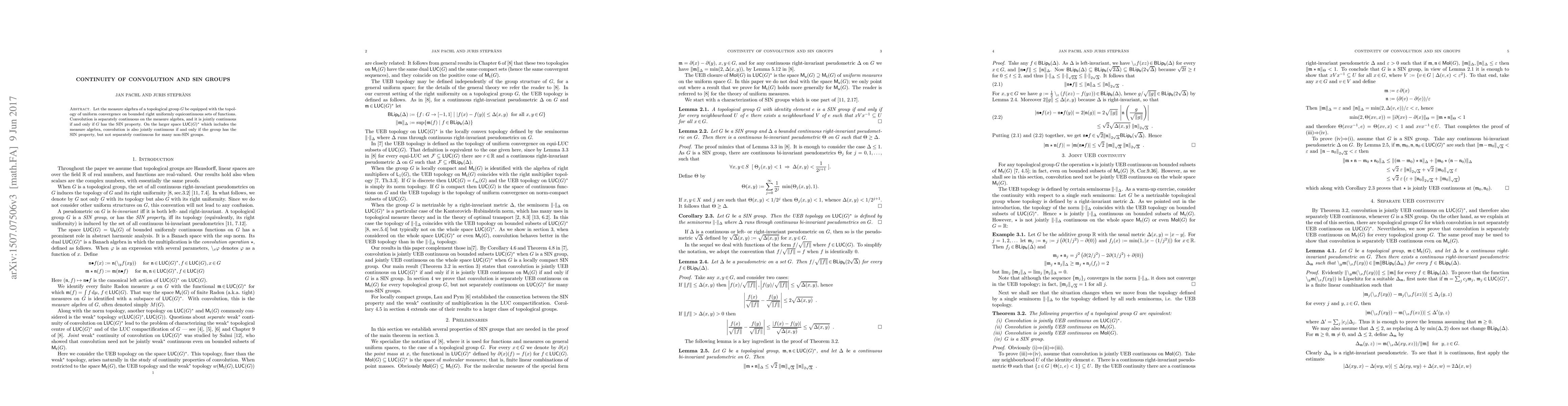 Let the measure algebra of a topological group be equipped with the topology of uniform convergence on bounded right uniformly equicontinuous sets of functions. Convolution is separately continuous on the measure algebra, and it is jointly continuous if and only if the group has the SIN property.