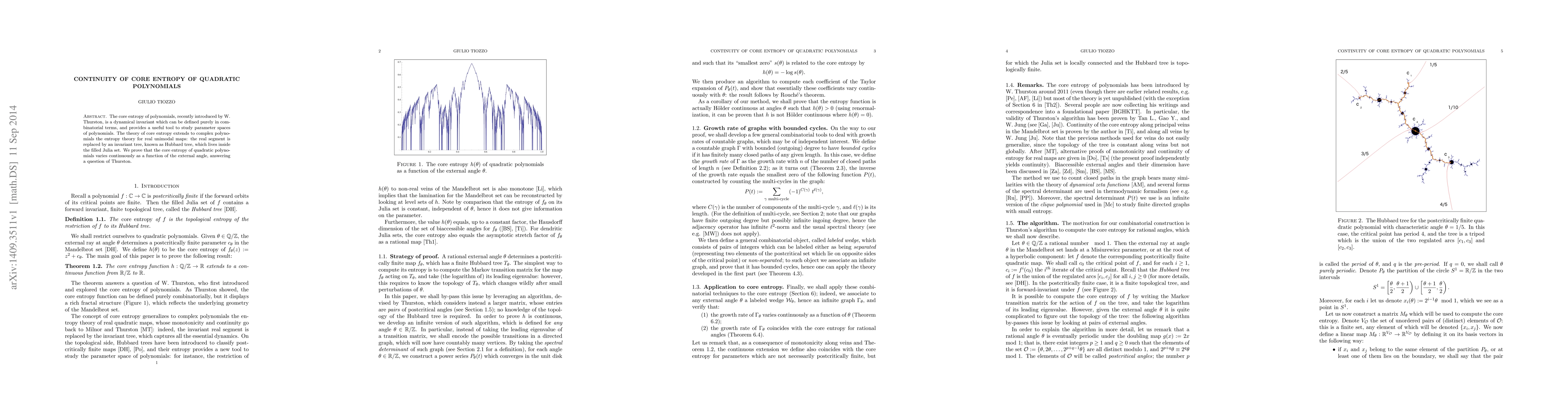The core entropy of polynomials, recently introduced by W. Thurston, is a dynamical invariant which can be defined purely in combinatorial terms, and provides a useful tool to study parameter spaces of polynomials. The theory of core entropy extends to complex polynomials the entropy theory for real unimodal maps: the real segment is replaced by an invariant tree, known as Hubbard tree, which lives inside the filled Julia set. We prove that the core entropy of quadratic polynomials varies continuously as a function of the external angle, answering a question of Thurston.