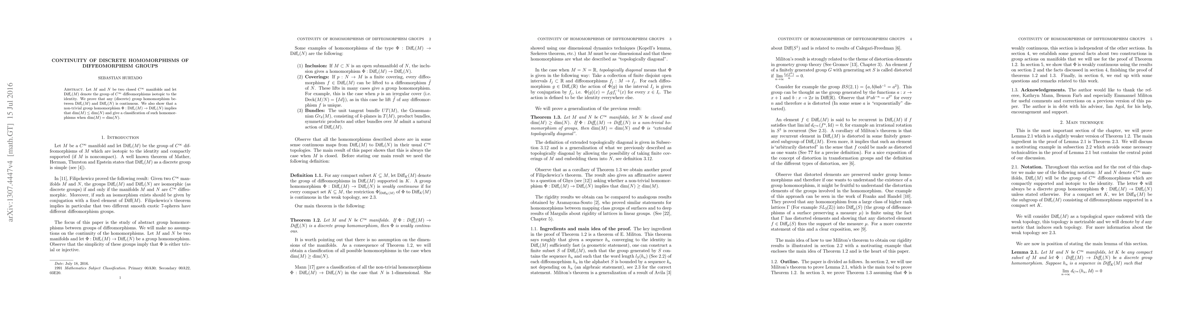 This paper proves that group homomorphisms between diffeomorphism groups of closed manifolds are continuous, with implications for dimensionality and classification when dimensions match.