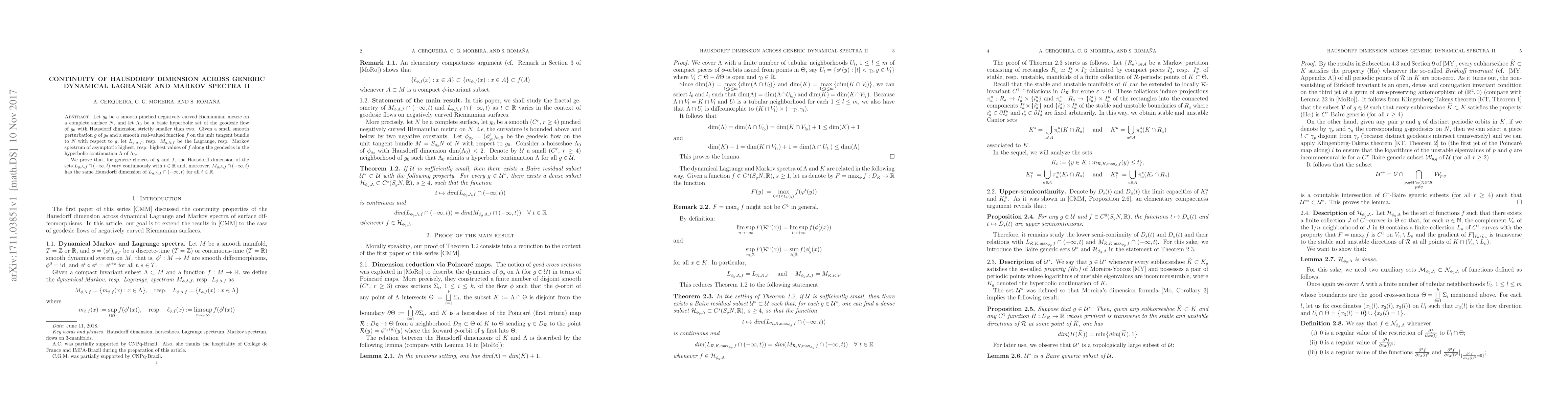 This research paper proves that for generic choices of a metric perturbation and a function on the unit tangent bundle, the Hausdorff dimension of certain sets related to the Lagrange and Markov spectra vary continuously with time and share the same dimension.
