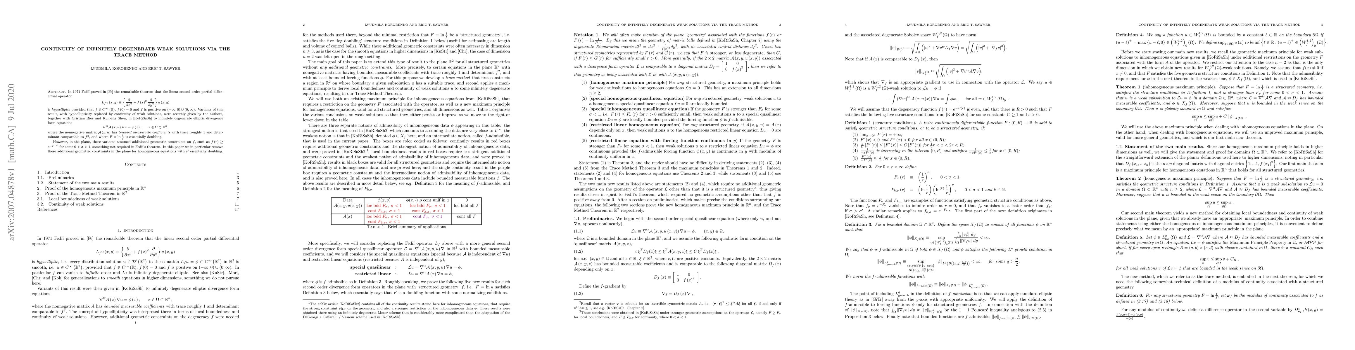 In 1971 Fedi\u{i} proved the remarkable theorem that the linear second order partial differential operator in the plane with coefficients 1 and f^2 is hypoelliptic provided that f is smooth, vanishes at the origin and is positive otherwise. Variants of this result, with hypoellipticity replaced by continuity of weak solutions, were recently given by the authors, together with Cristian Rios and Ruipeng Shen, to infinitely degenerate elliptic divergence form equations where the nonnegative matrix A(x,u) has bounded measurable coefficients with trace roughly 1 and determinant comparable to f, and where F=ln(1/f) is essentially doubling. However, in the plane, these variants assumed additional geometric constraints on f, something not required in Fedi\u{i}'s theorem. In this paper we in particular remove these additional geometric constraints in the plane for homogeneous equations with F essentially doubling.