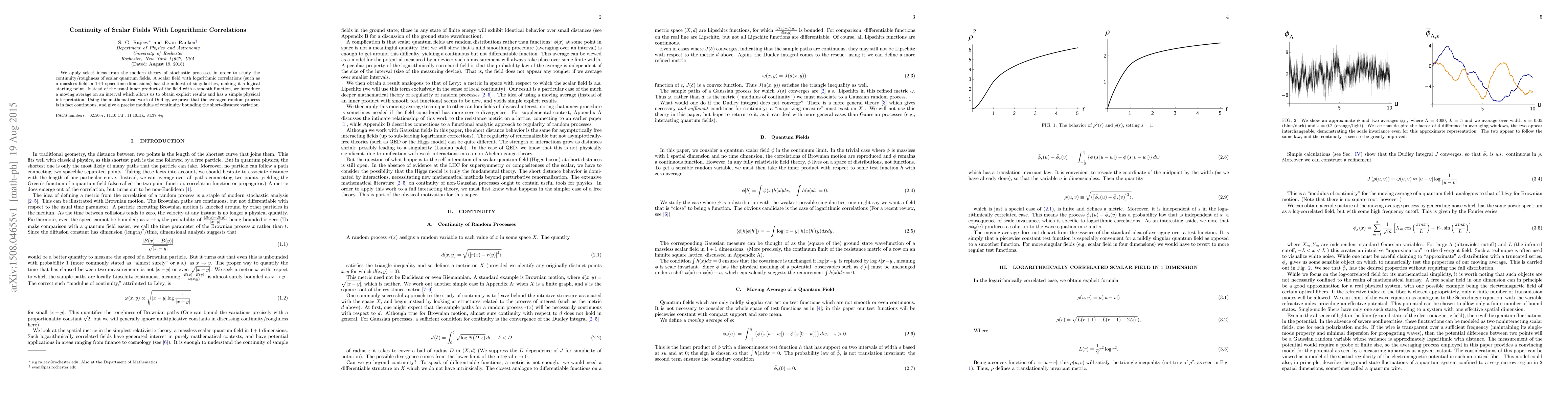 Researchers use mathematical techniques to study the behavior of scalar quantum fields with logarithmic correlations, finding that they are continuous despite their singularities.