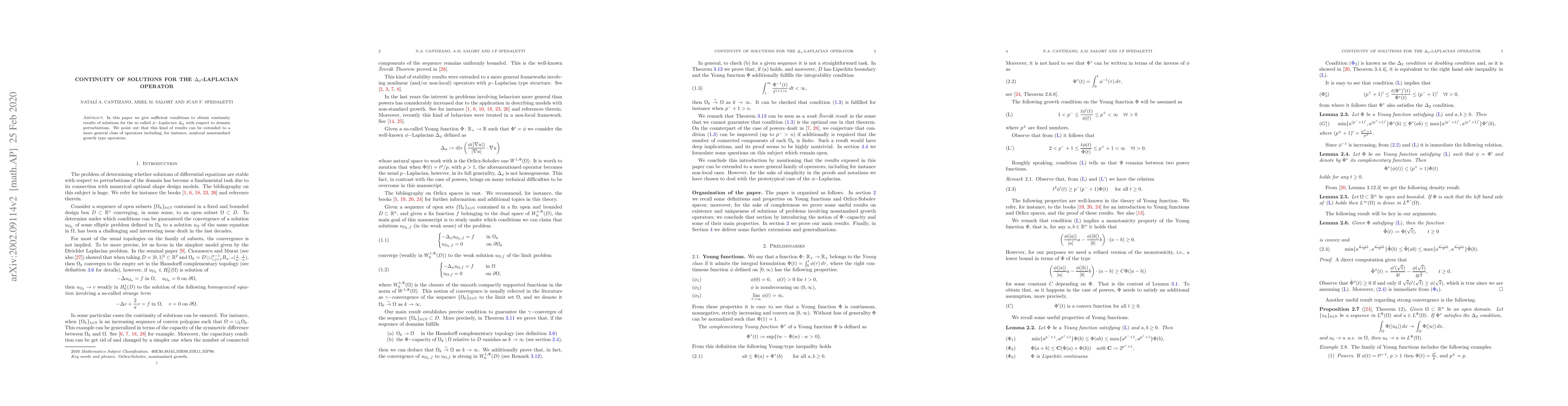 This paper provides conditions for continuity of solutions to the phi-Laplacian operator when the domain is perturbed, with implications for a broader class of operators.