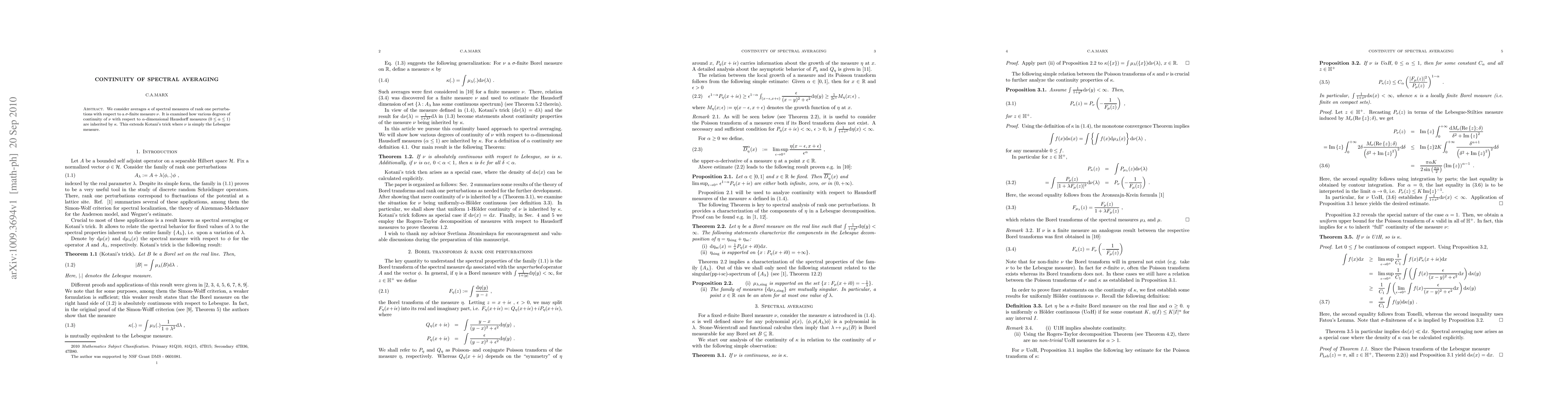 This research explores the continuity of spectral averaging for rank one perturbations concerning a u201csigmau201d-finite measure u03bc. It extends Kotani's method by examining how different levels of u03bc's continuity with respect to 0u20131 dimensional Hausdorff measures impact the average u03bc. The study's implications deepen our understanding of spectral measure properties under various degrees of measure continuity.