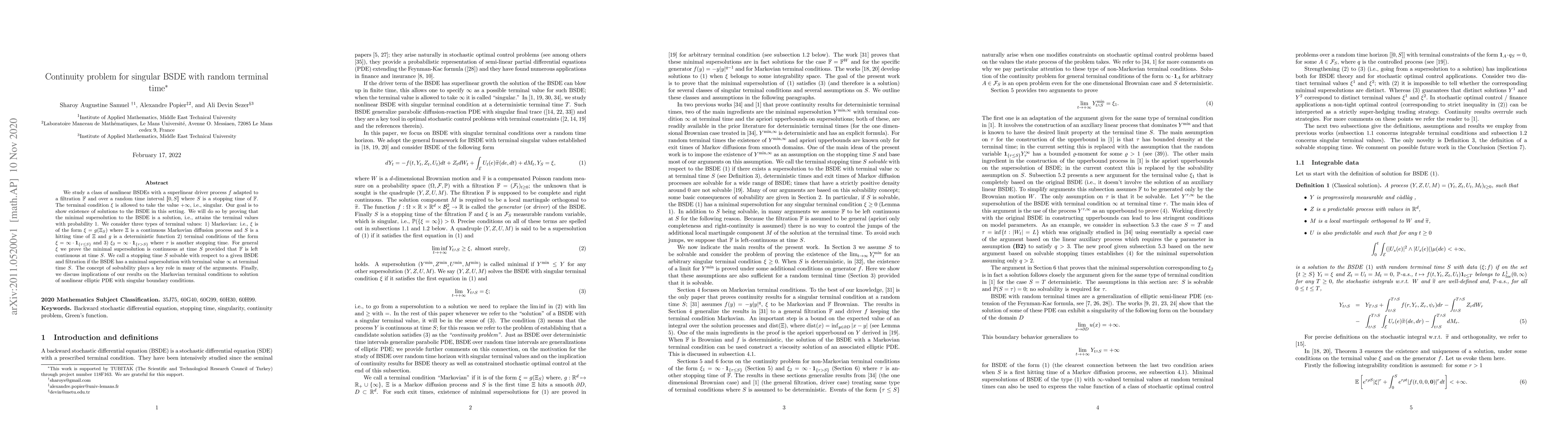 This paper investigates the existence of solutions to nonlinear BSDEs with random terminal times, focusing on solvability of stopping times and implications for solving nonlinear elliptic PDEs.