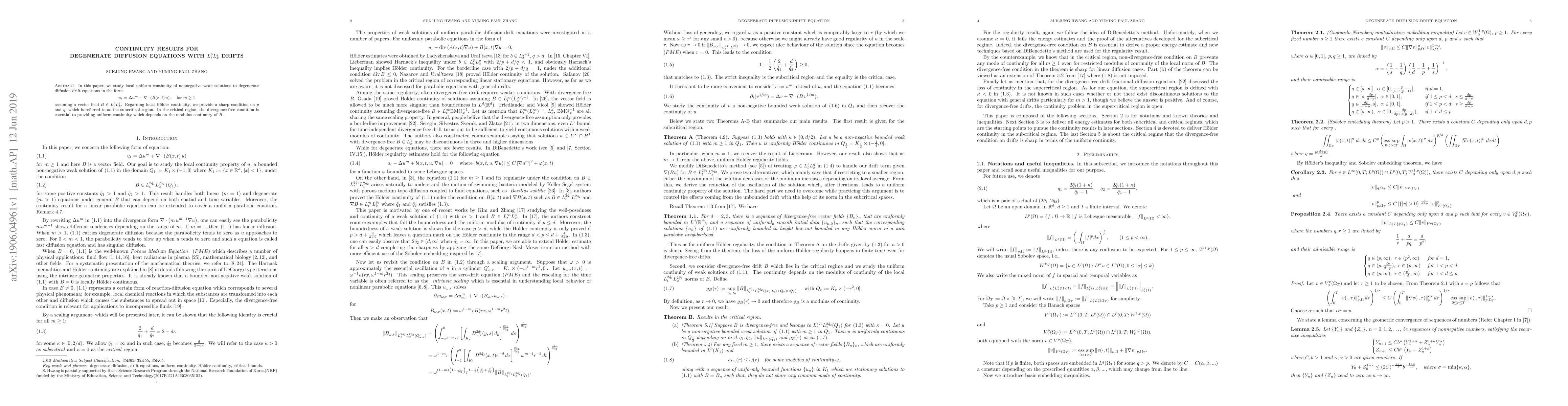 In this paper, we study local uniform continuity of nonnegative weak solutions to degenerate diffusion-drift equations in the form \[ u_{t} = \Delta u^{m} + \nabla\cdot \left( B (x,t) \, u\right), \quad \text{for } m \geq 1 \] assuming a vector field $B \in L^{p}_t L^{q}_{x}$. Regarding local H\"{o}lder continuity, we provide a sharp condition on $p$ and $q$, which is referred to as the subcritical region. In the critical region, the divergence-free condition is essential to providing uniform continuity which depends on the modulus continuity of $B$.